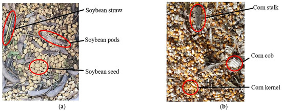 The deep understanding of crop loss patterns during harvesting is crucial for improving and optimizing mechanical components, reducing operational energy consumption, and enhancing harvesting efficiency [66]. Specifically, this understanding is now enabled by deploying targeted sensing technologies, such as piezoelectric impact plates, to quantify grain loss from the cleaning shoe and machine vision systems to monitor grain breakage and impurity levels. Based on previous research into harvesting damage and losses, the primary loss patterns in soybean harvesting include the following (Figure 8) [67].