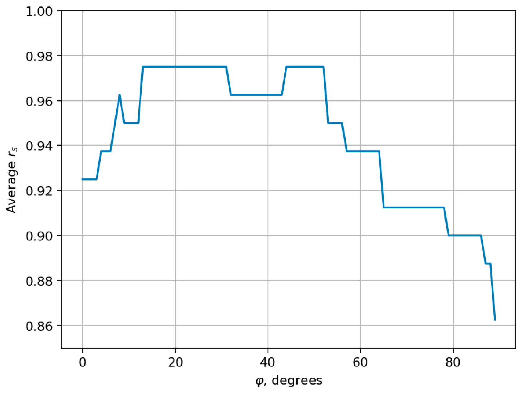 The maximum average Spearman’s rank correlation coefficient is equal to 0.977 and is achieved for a range of