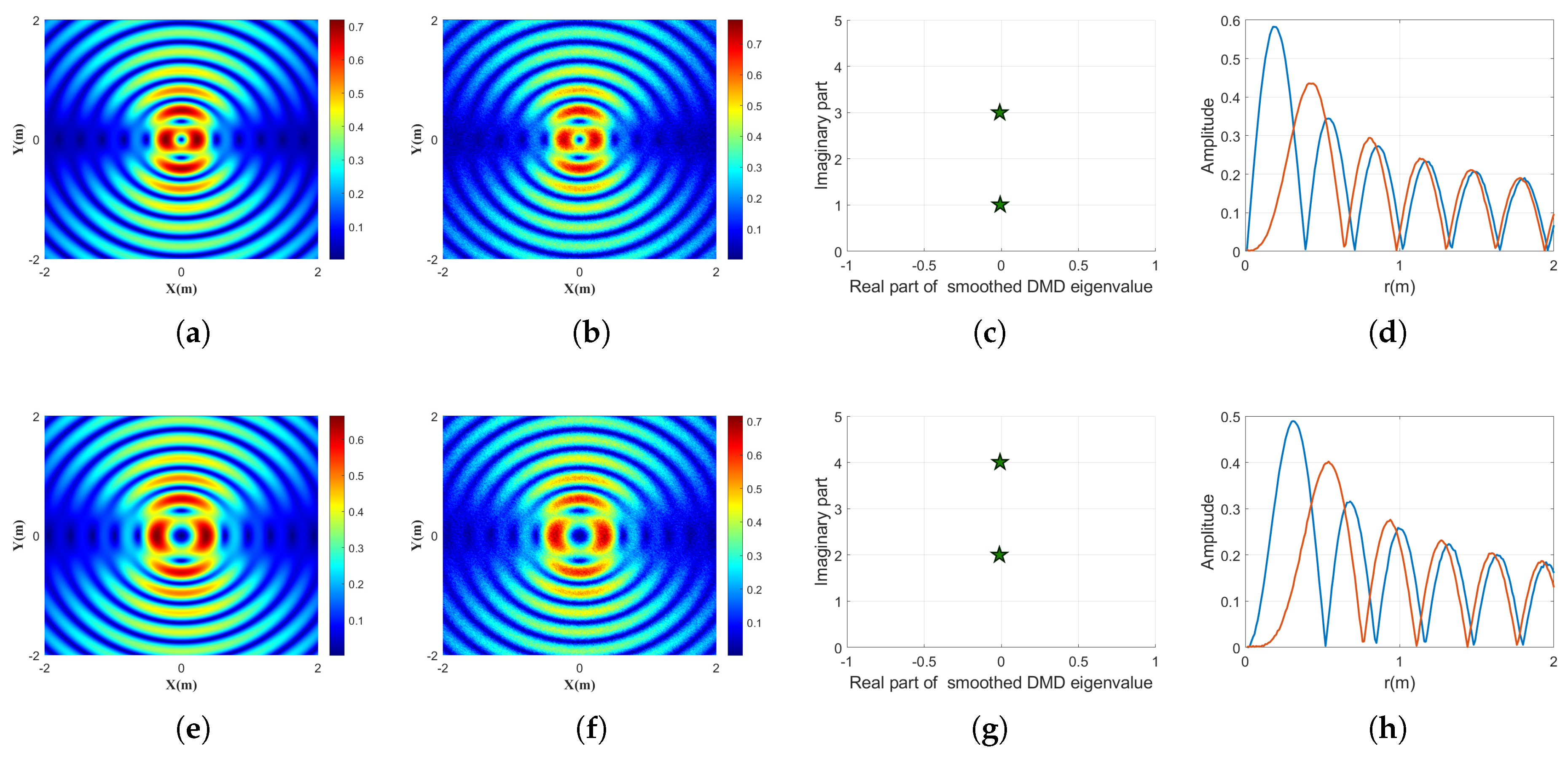 - Zhang, Y.; Jiang, L. Suppressing White-Noise Interference for Orbital Angular Momentum Waves via the Forward–Backward Dynamic Mode Decomposition. IEEE Trans. Antennas Propag. 2023, 71, 2879–2884. [Google Scholar] [CrossRef]