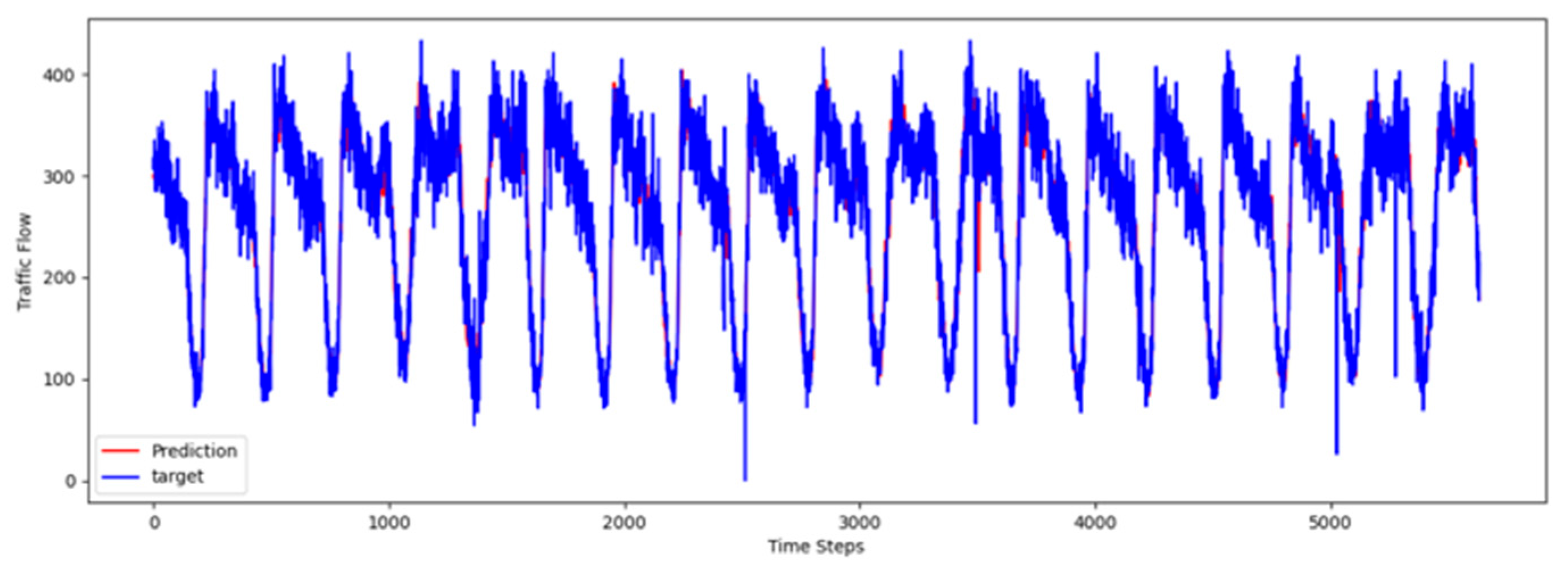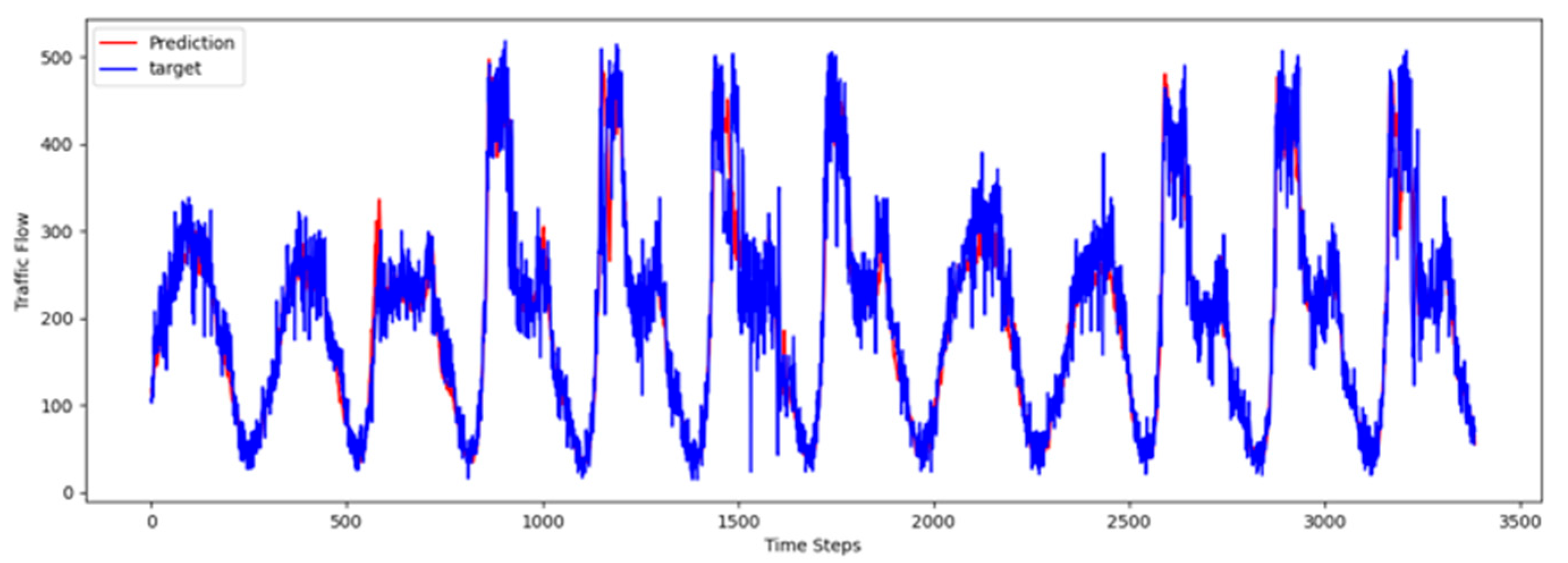 The objective of traffic flow prediction is to accurately infer future traffic states by leveraging the spatiotemporal dependencies embedded within historical observations, under the constraint of a known road network topology. Formally, let the input sequence be defined as v T = X 1 , X 2 , , X T , and the target output sequence as v P = X T + 1 , X T + 2 , , X T + P . The prediction task can thus be formulated as learning a mapping function f :