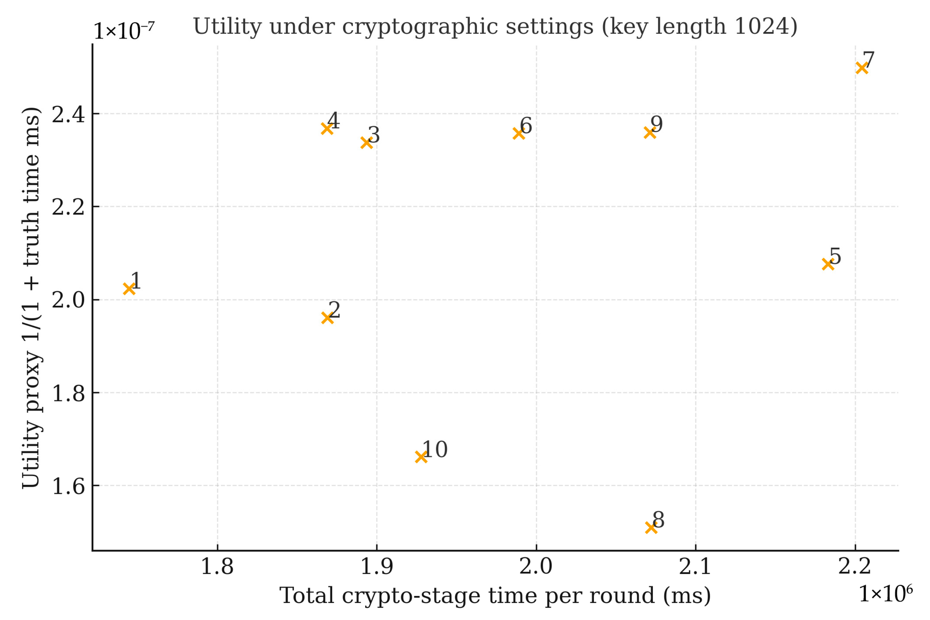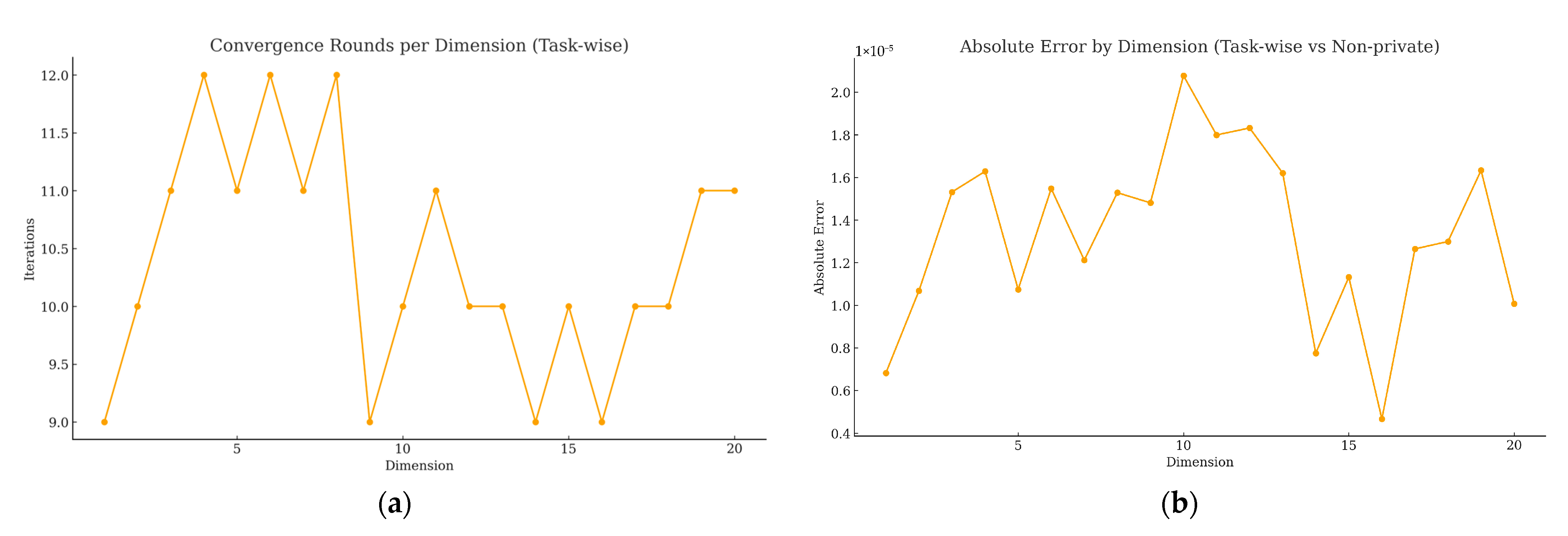- Experiments on real datasets demonstrate accurate aggregation under privacy constraints, with fast, stable convergence and predictable scalability across users, tasks, and key sizes.
