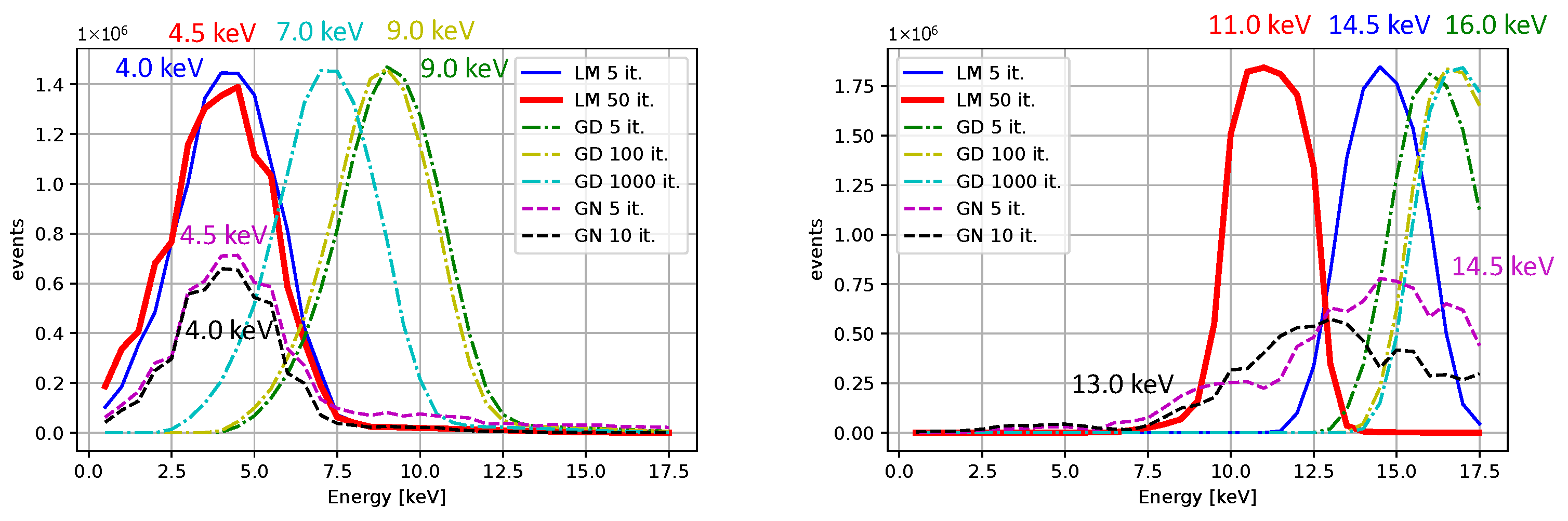 - Amoyal, G.; Ménesguen, Y.; Schoepff, V.; Carrel, F.; Michel, M.; Angélique, J.C.; de Lanaute, N.B. Evaluation of Timepix3 Si and CdTe Hybrid-Pixel Detectors’ Spectrometric Performances on X- and Gamma-Rays. IEEE Trans. Nucl. Sci. 2021, 68, 229–235. [Google Scholar] [CrossRef]