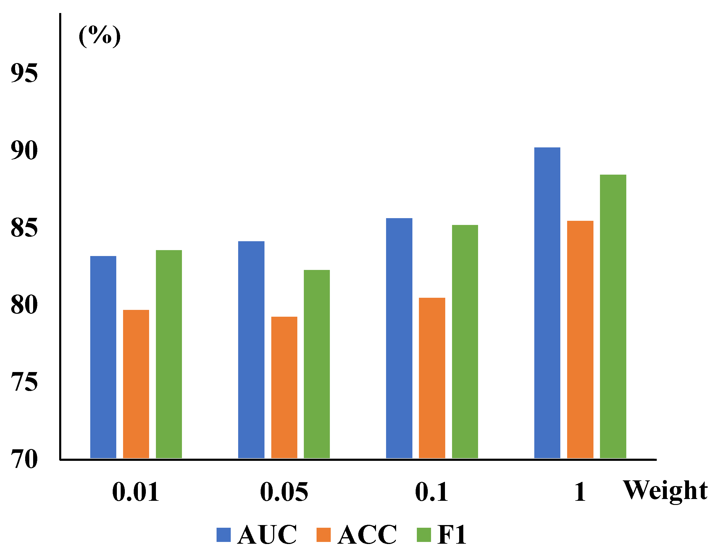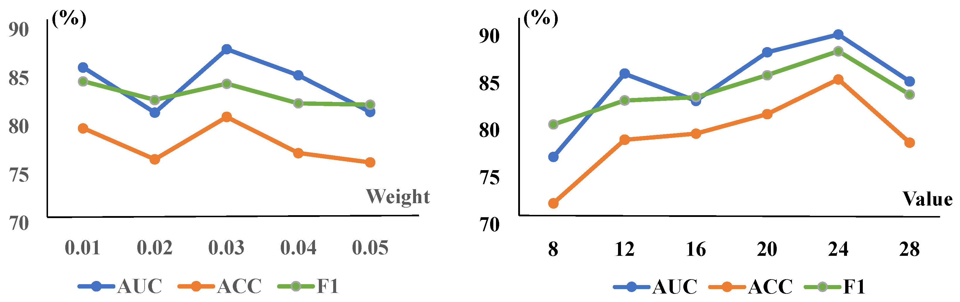 | AUC (%) | ACC (%) | F1 (%) | AUC (%) | ACC (%) | F1 (%) | ||