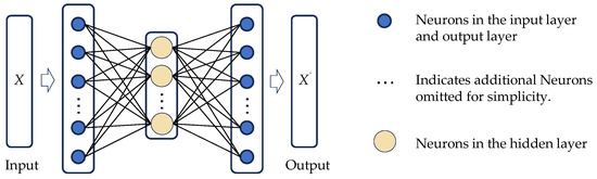 Autoencoders represent a classical type of unsupervised neural network model, characterized by a fundamental architecture comprising an encoder and a decoder. The encoder functions to map high-dimensional input data into a low-dimensional latent space, thereby producing a compact feature representation. The decoder subsequently reconstructs this latent representation into output matching the original input dimensions. Conventional autoencoders typically employ symmetrical encoder–decoder structures and are trained via minimization of reconstruction error (e.g., Mean Squared Error) between input and output. These models have demonstrated robust performance in applications including feature extraction, data dimensionality reduction, and anomaly detection. A schematic illustration of the autoencoder architecture is presented in Figure 2.
