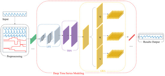 Among these, represents the unidirectional hidden dimension, and bidirectional concatenation yields dimension representation. Unlike fixed receptive fields achieved solely through convolution, TRN can better capture cross-period long-range dependencies without compromising temporal resolution.