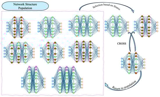 - First, an initial population containing multiple individuals is generated. Each individual represents a potential solution to the problem. The fitness value of each individual in the population is calculated, where the fitness function evaluates the “survivability” of each individual based on its performance.