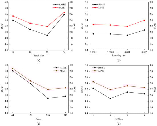 - Transformer: Transformer [] is an attention-based model that learns attention weights from sequential data using multi-head attention mechanisms. The learning rate is 0.001. The batch size is 32. The number of heads was set to 4, and the feature vector dimension was set to 256.
