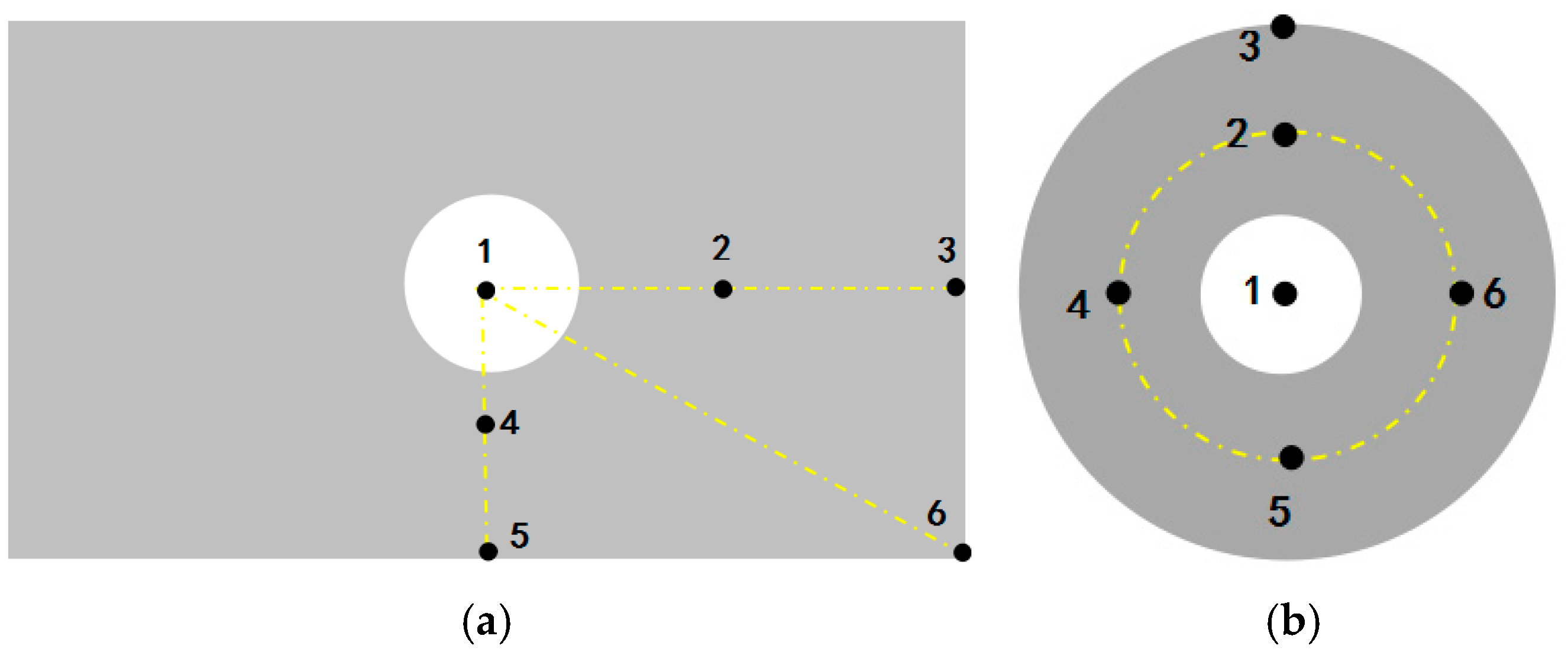 Measuring point distribution diagram of sensitive plates: (a) Measuring point distribution diagram of rectangular sensitive plates; (b) Measuring point distribution diagram of circular sensitive plates.