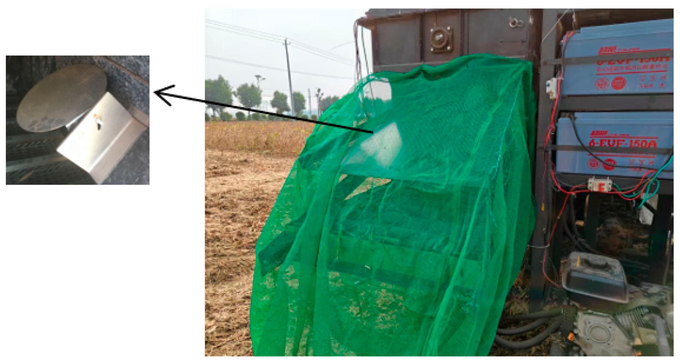 - Zhang, G.Y.; Jin, C.Q.; Yang, T.X.; Liu, Z.; Chen, M.; Zhou, D.D. Design and Implementation of Cleaning Loss Rate Monitoring System for Combine Harvester. J. Chin. Agric. Mech. 2019, 40, 146–150. [Google Scholar] [CrossRef]