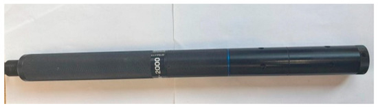 A multiparameter sonde (Figure 3), the AquaSond-2000 water quality monitoring sonde (AS-2000), was selected for continuous water quality monitoring. The AS-2000 features onboard data logging with a memory capacity of 150,000 datasets and can be deployed for up to 180 days. The device comes equipped with a range of standard sensors and offers customization options for additional sensors. Standard parameters measured by the AS-2000 include DO, specific electrical conductivity, absolute EC, pH, oxidation-reduction potential (ORP), total dissolved solids, resistivity, salinity, seawater specific gravity, and temperature. The AS-2000 also features two auxiliary sockets for additional sensors—one Ion Selective Electrode (ISE) socket and one optical electrode socket—enhancing its versatility for comprehensive water quality monitoring.