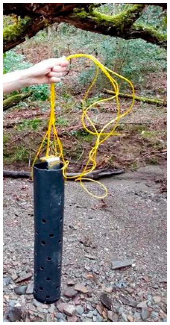 Deployment setup of the AS-2000 within a protective plastic housing that allowed water to flow freely past the sensors while shielding the device from damage due to debris or sediment build-up. The sonde was anchored at a fixed point to ensure consistent submersion and was routinely checked to ensure continued operation and data quality.