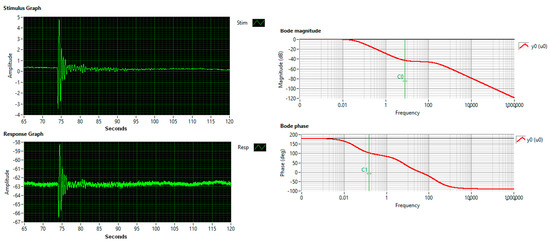 The signal generator was implemented in software (Figure 5(1)), providing test frequencies from 5 Hz to 45 Hz in 1 Hz increments. The preamplifier supplied with the EMFIT sensors has an upper cutoff frequency of 50 Hz, which, according to the Nyquist theorem, implies a sampling frequency of 100 Hz.