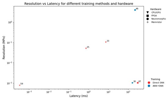 Hybrid encoding combines rate and temporal codes, leveraging their advantages of each scheme. Examples include dynamic scene recognition and mixed-modality sensing [51,52], where firing rate and spike timing were jointly optimised for performance across varying scene dynamics. Moreover, ref. [53] utilised a hybrid method of combining bit-plane coding with rate coding to enhance the performance of the network.