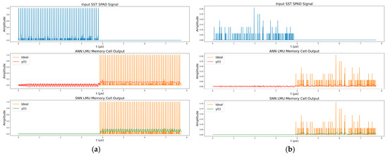 The reviewed works include spiking variants of gated units such as Long Short-Term Memory (LSTM) and Gated Recurrent Unit (GRU) for event-based biomedical imaging [35] and converted low-latency spiking LSTMs designed for efficient hardware deployment [50]. The LMU is another type of recurrent network, which has proven to be effective in encoding temporal dependencies with a modest number of parameters, outperforming other recurrent architectures (e.g., LSTM and GRU) in certain tasks [60]. Reference [36] implements an LMU-based neural network in a dToF application, trying to exploit the network’s ability to process long time series data.