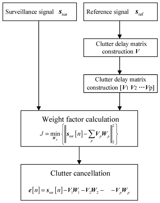 Usually, the energy level of the target echo is much weaker than the clutter echoes reflected from the ground object. Thus, the clutter echoes in the surveillance channel need to be suppressed before detecting the weak target echo. In the following section, the clutter cancellation method is introduced in detail.