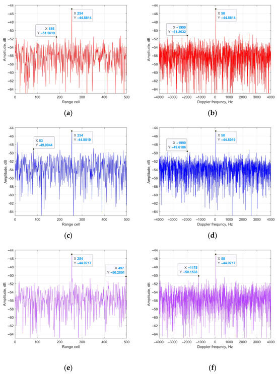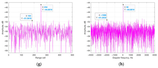 After clutter cancellation, most of the clutter echo signals are suppressed, but there is still a small amount of clutter residue and thermal noise. The energy level of the weak target echo is still weaker than the thermal noise. Thus, range-Doppler processing between the reference signal and the signal residue after clutter cancellation is required to raise the energy level of the weak target echo and further suppress the interference signal, which is performed as
