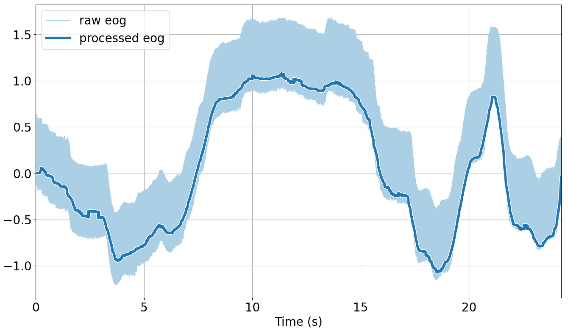- Ryu, J.; Lee, M.; Kim, D.H. EOG-based eye tracking protocol using baseline drift removal algorithm for long-term eye movement detection. Expert Syst. Appl. 2019, 131, 275–287. [Google Scholar] [CrossRef]