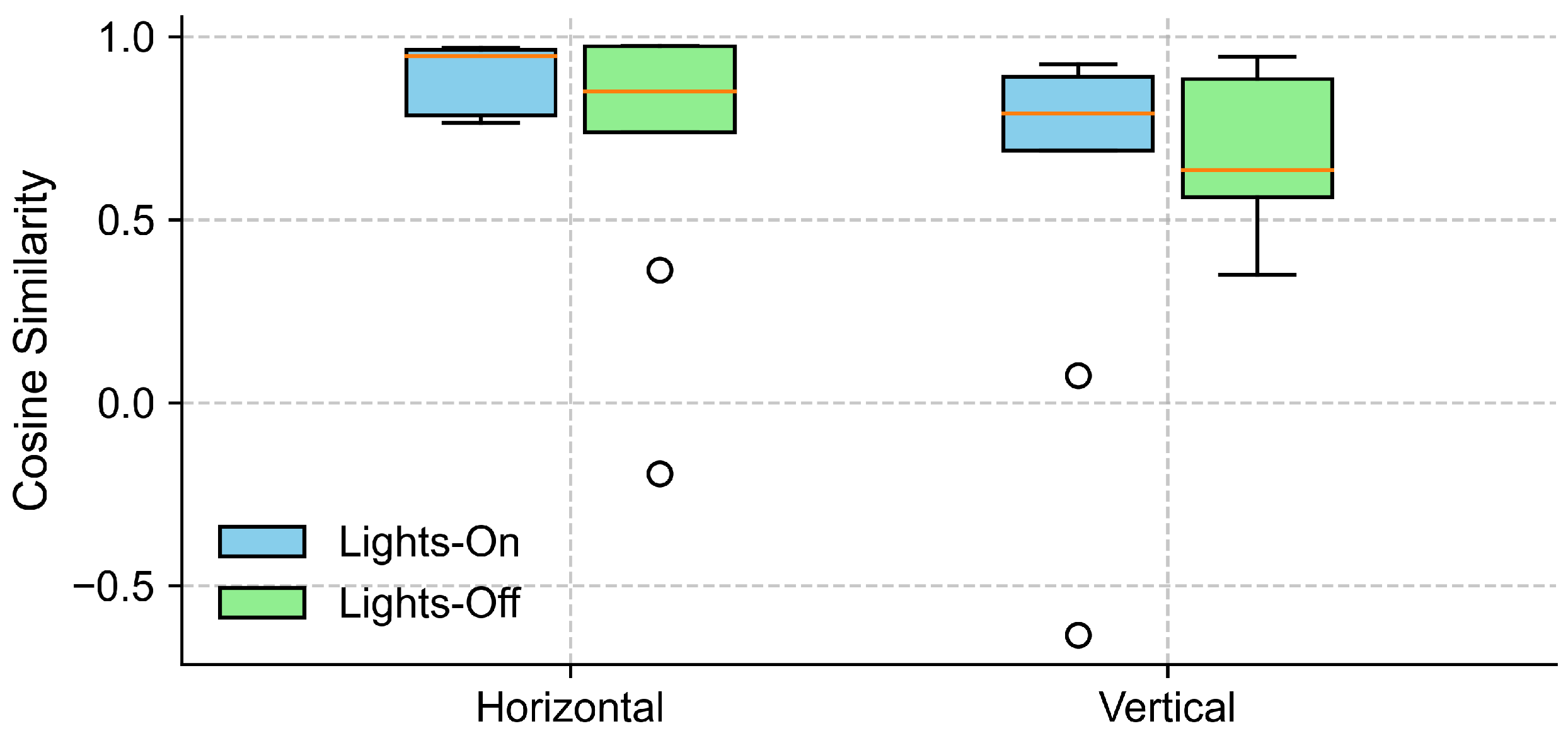 4.2. Comparison of EOG and Eye-Tracking Similarity Between Eyes-Open Lights-On and Lights-Off Conditions