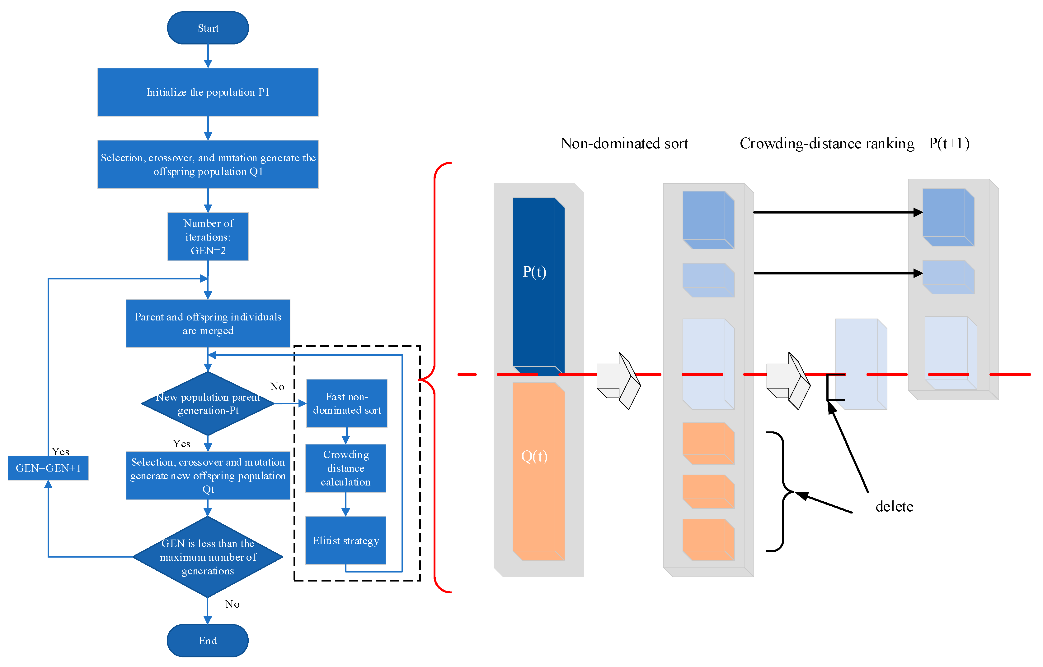 - Deb, K.; Pratap, A.; Agarwal, S.; Meyarivan, T. A fast and elitist multiobjective genetic algorithm: NSGA-II. IEEE Trans. Evol. Comput. 2002, 6, 182–197. [Google Scholar] [CrossRef]