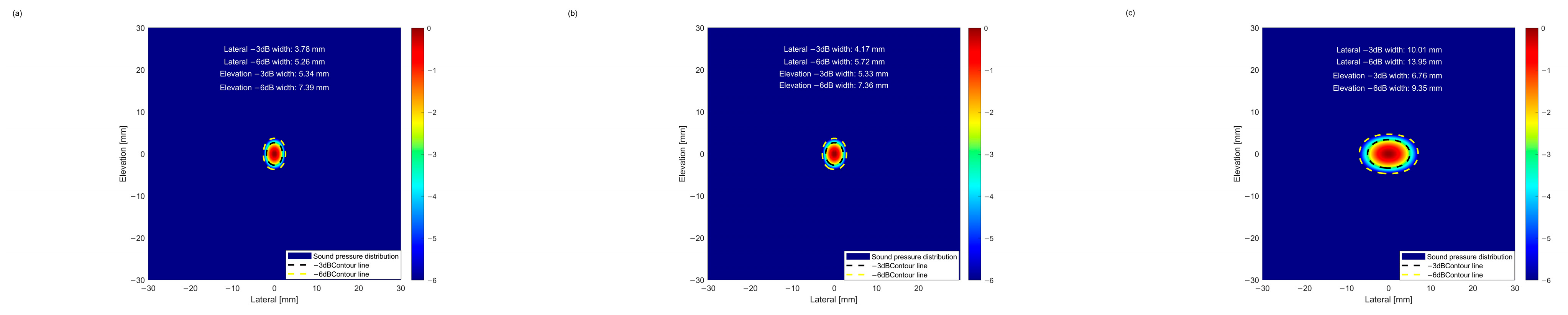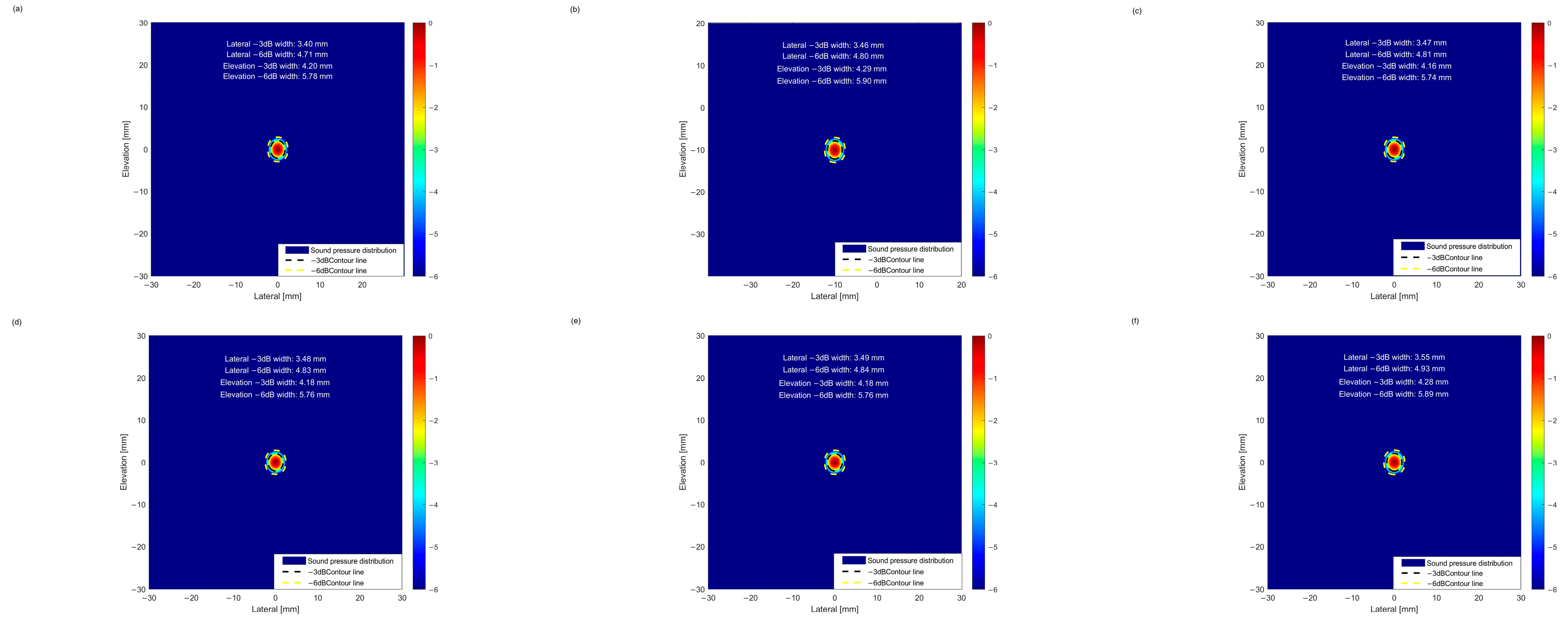 | Parametric Solutions | Lateral −3 dB Width | Lateral −6 dB Width | Elevation −3 dB Width | Elevation −6 dB Width |