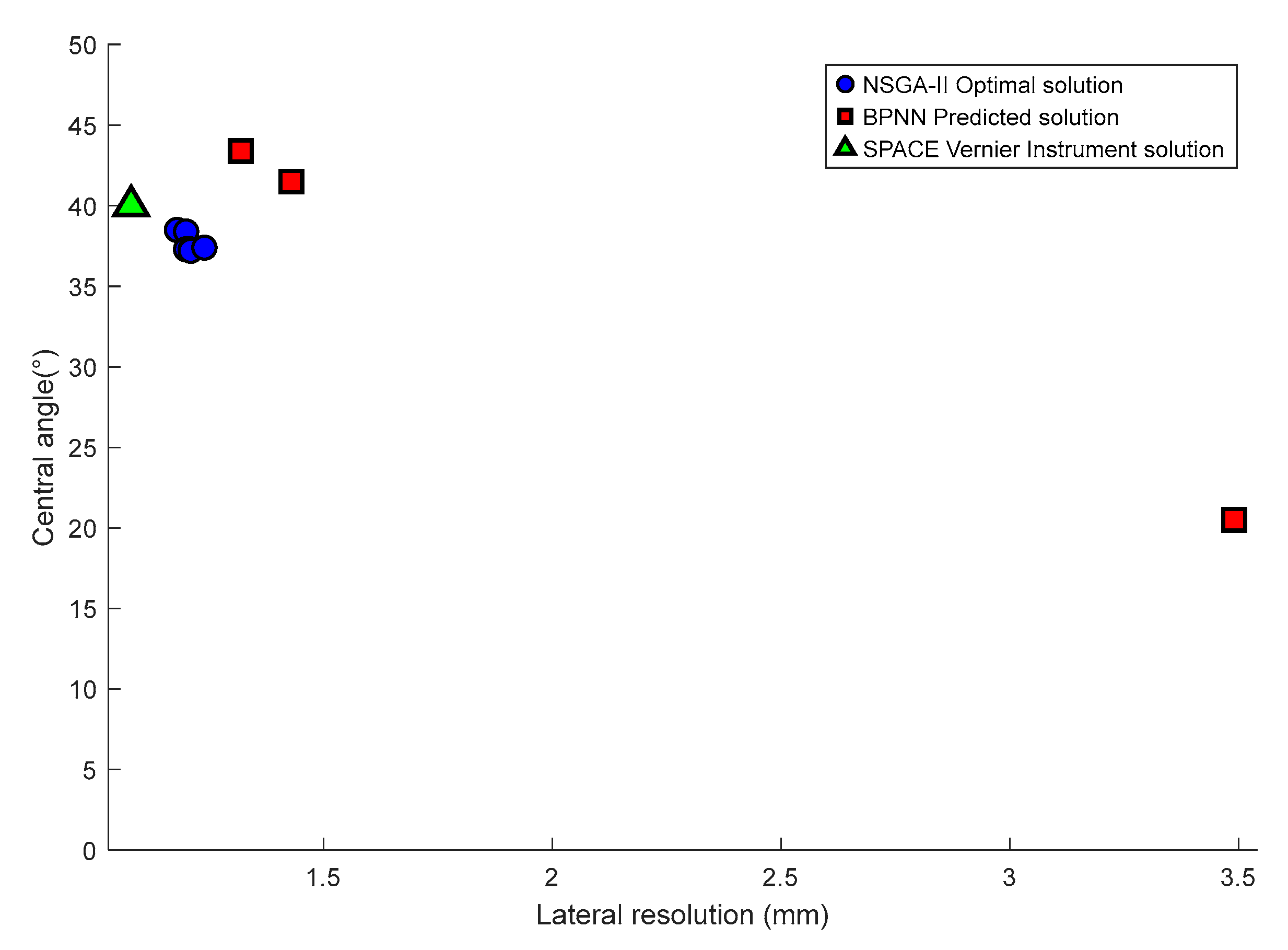 - Advantages of NSGA-II: The solutions obtained by NSGA-II provide superior resolution compared with those of the BPNN algorithm, and their beam focusing performance is highly comparable to that of the instrument solution. This fully verifies the technical effectiveness of NSGA-II in optimizing beam geometric parameters.
