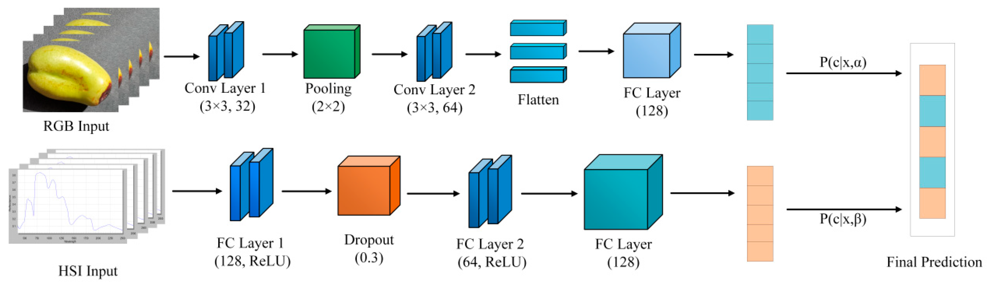 - Mesa, S.; Chiang, L. Multi-input deep learning fusion model for banana grading using MLP and RGB-HSI. Postharvest Biol. Technol. 2022, 194, 112059. [Google Scholar]