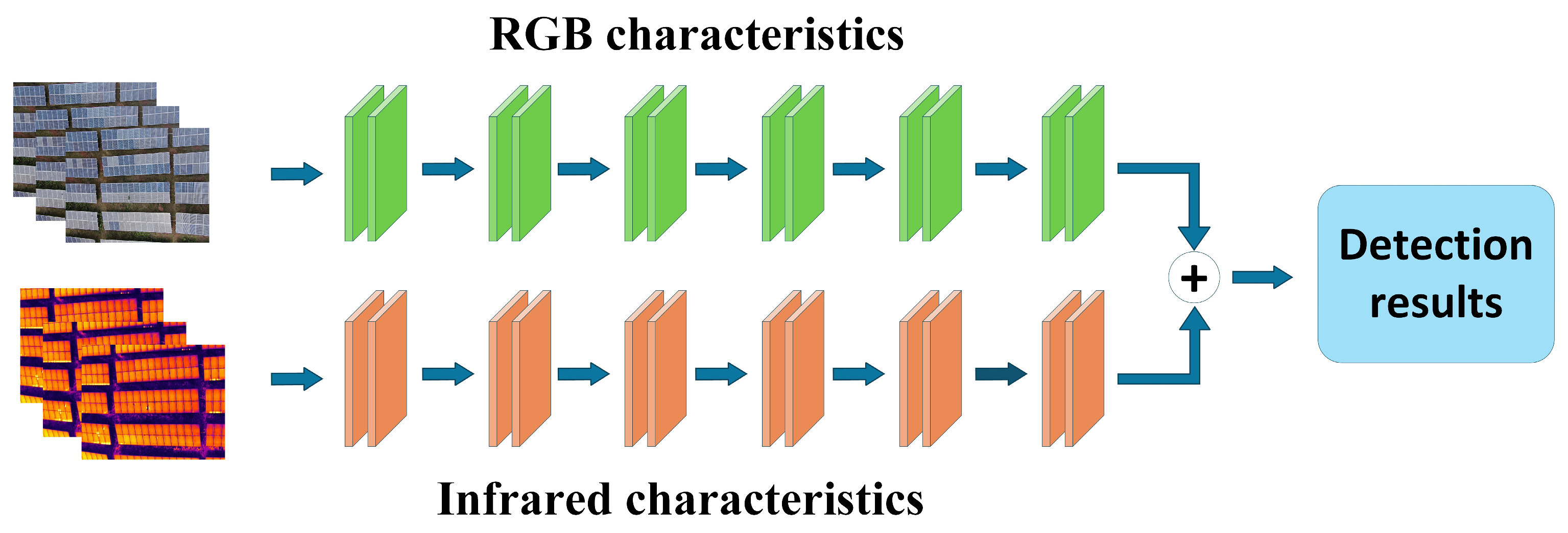 30]. Kuo et al. constructed an intelligent operation and maintenance system for photovoltaic power plants based on UAV multimodal image fusion, proposing a dual-channel CNN architecture that separately processes IR and RGB data to achieve high-accuracy comprehensive classification [
