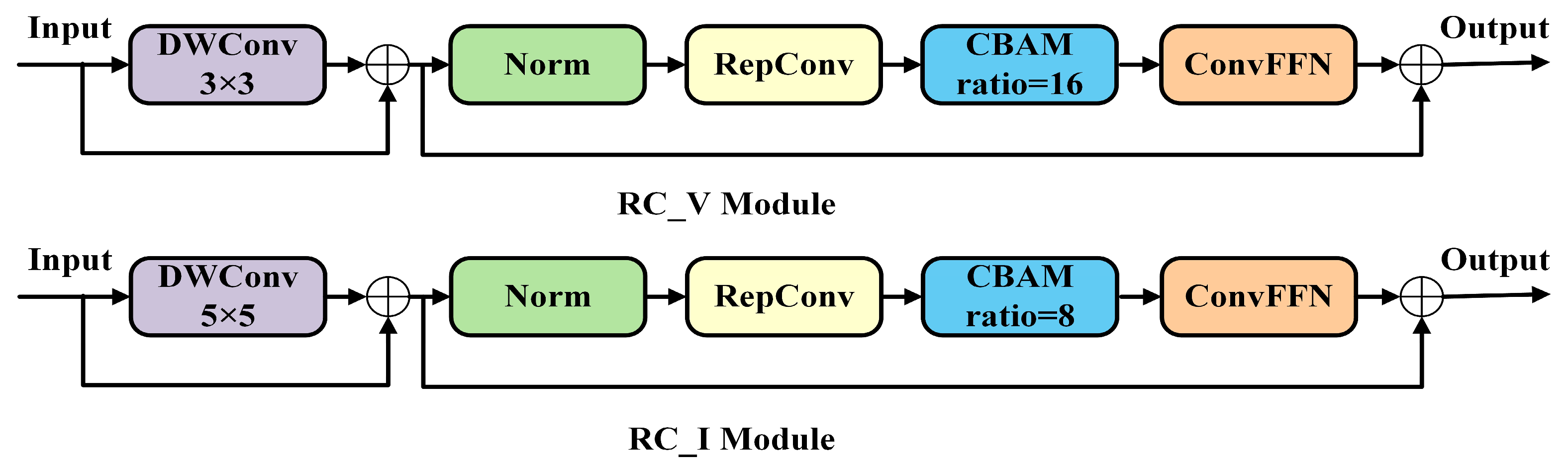 This study systematically evaluated the impact of heterogeneous convolutional kernel parameters on multimodal feature extraction in the RC_V and RC_I modules via ablation experiments. As presented in