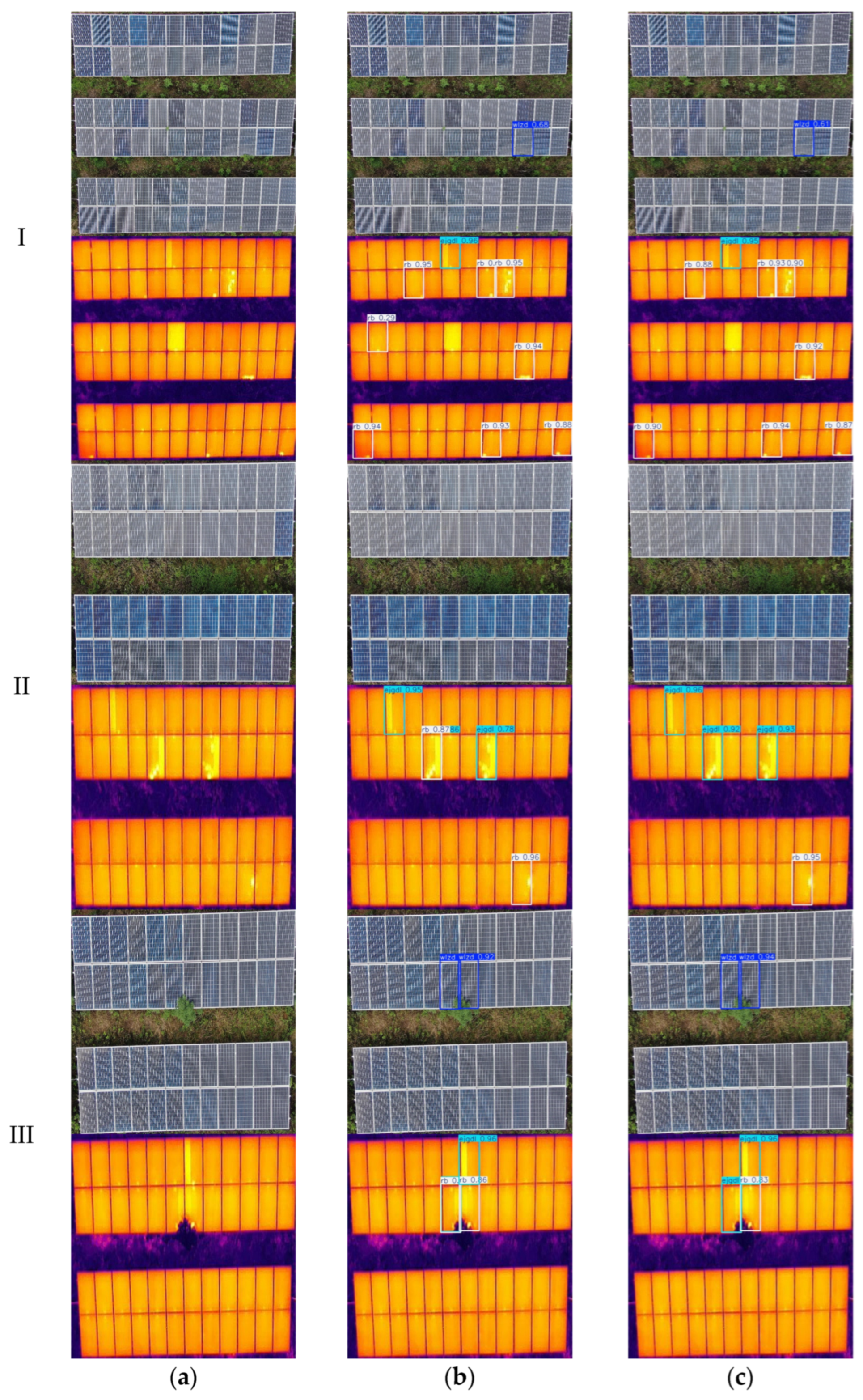 28]. Feng et al. proposed an intelligent detection framework for photovoltaic modules that integrates dual infrared cameras with deep learning, achieving high-speed module segmentation at 36 FPS through YOLOv5 and fault classification with 95% accuracy through ResNet, innovatively addressing the detection challenges of minute thermal defects in low-altitude environments [