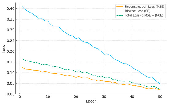The ReLU activation function was selected for all convolutional and transposed convolutional layers due to its nonlinearity and efficient gradient propagation, avoiding vanishing gradients and ensuring faster convergence. The Sigmoid function was used at the final output layer to constrain pixel intensity values to the normalized range [0, 1], maintaining image fidelity. In the latent space projection layer, a Sigmoid activation was also used to produce probabilistic representations that can be thresholded into binary codes, aligning with the LDPC encoding requirements.