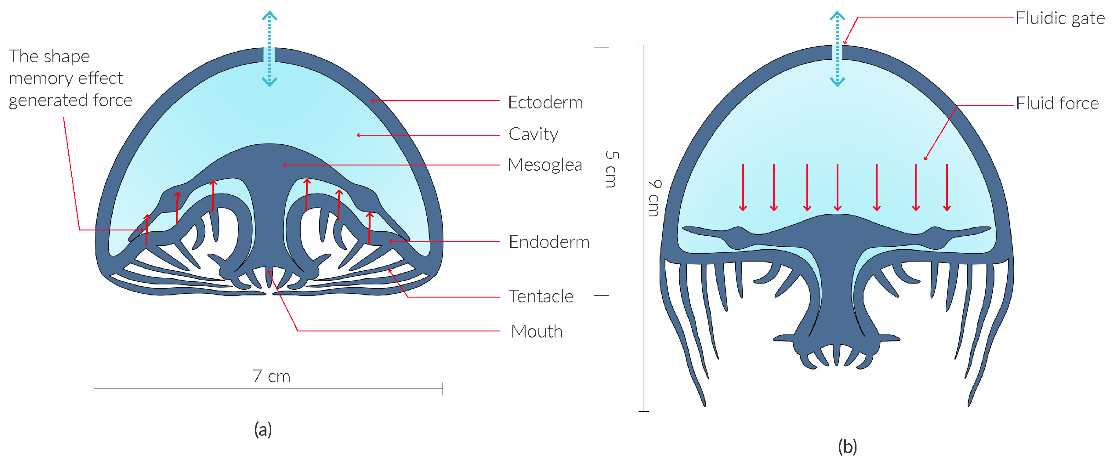 - Ren, Z.; Hu, W.; Dong, X.; Sitti, M. Multi-functional soft-bodied jellyfish-like swimming. Nat. Commun. 2019, 10, 2703. [Google Scholar] [CrossRef] [PubMed]