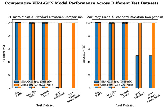 - Domain Adaptation through Augmentation: The inclusion of the augmented NTU data successfully taught the model to recognize the specific fall characteristics and environmental conditions inherent in the NTU dataset (e.g., slower falls, post-fall recovery actions). This demonstrates that model performance degradation is not an inherent flaw in the model architecture (VIRA-GCN), but rather a failure to generalize due to domain-specific feature scarcity in the original training data.