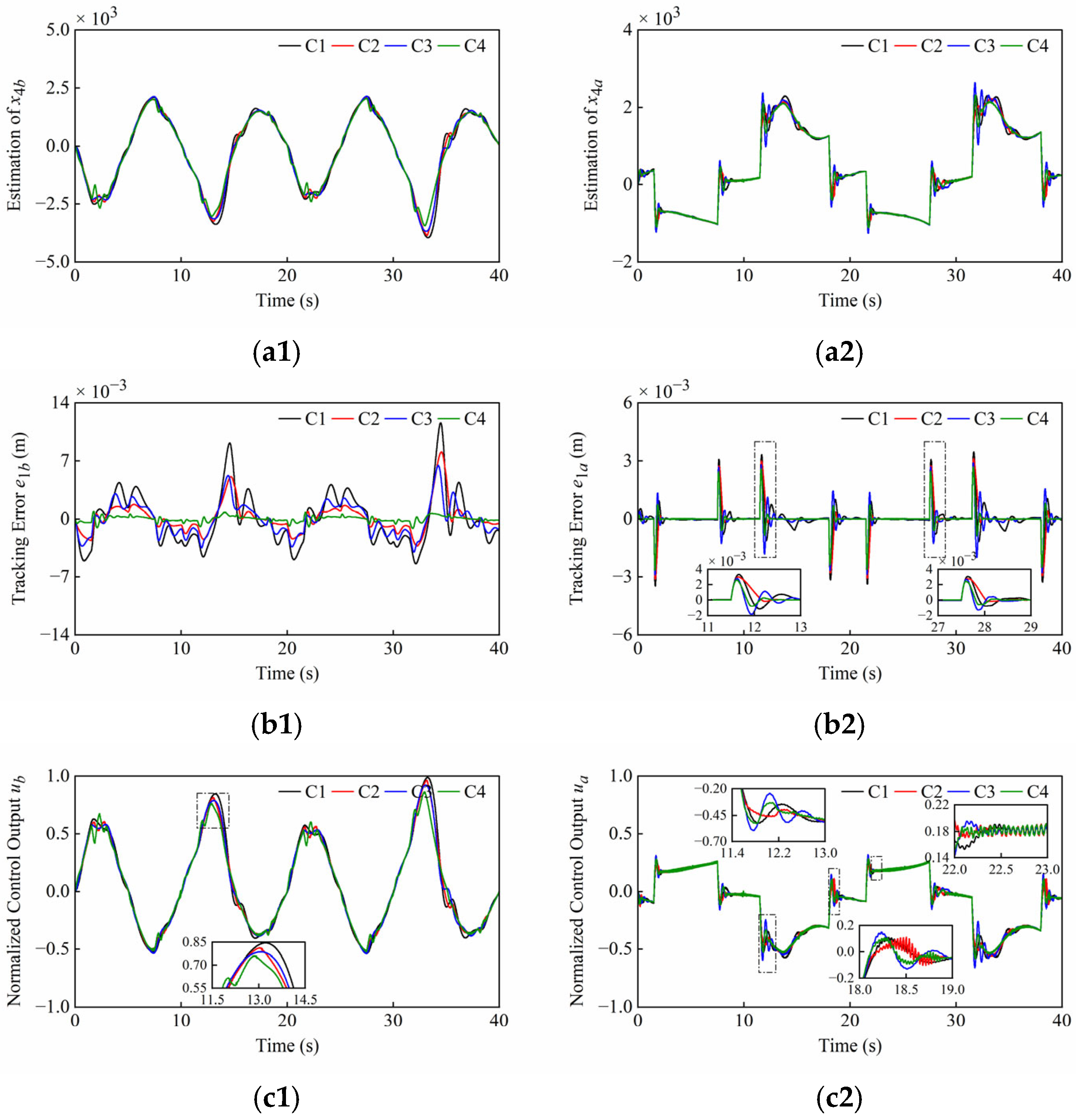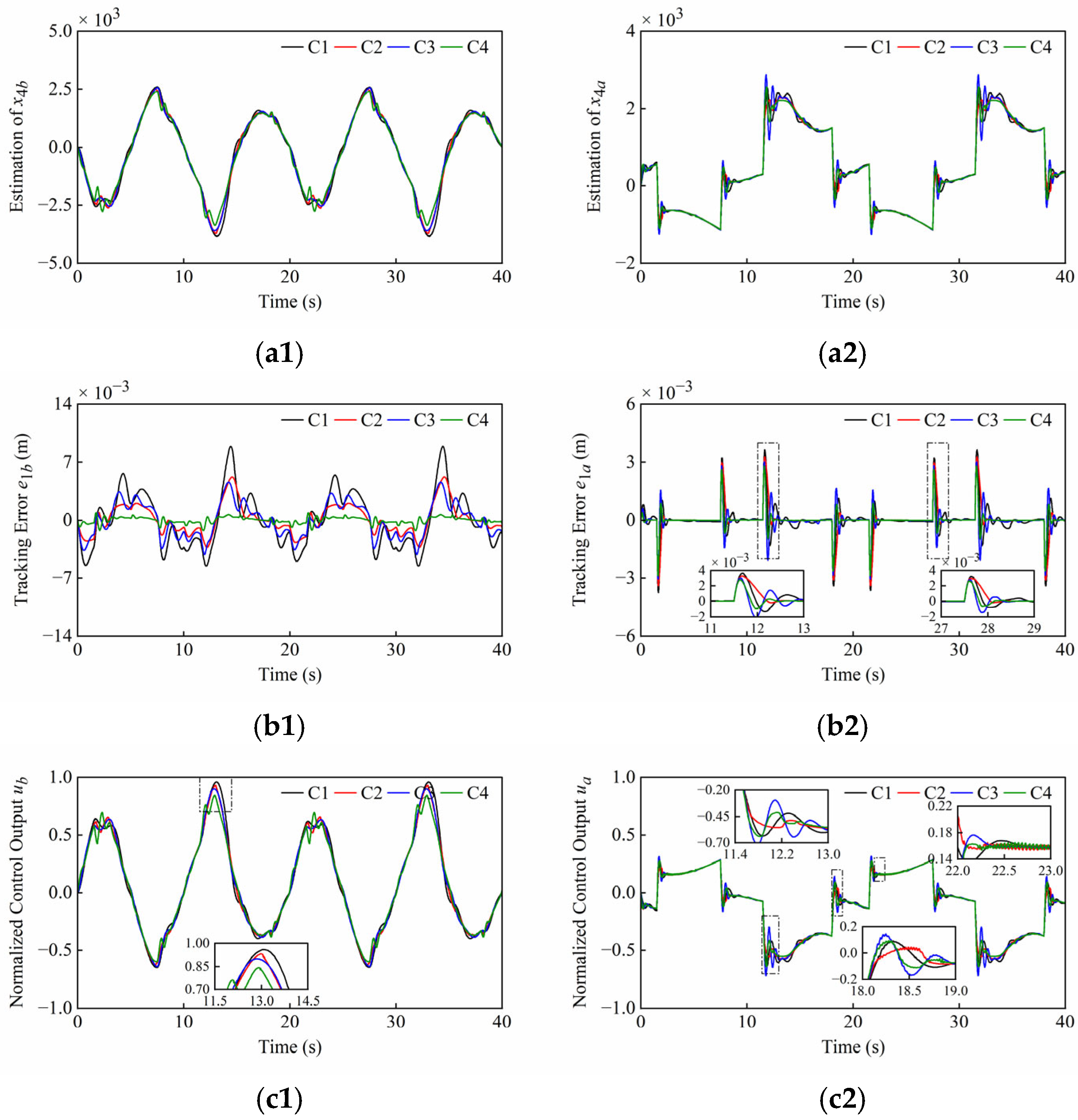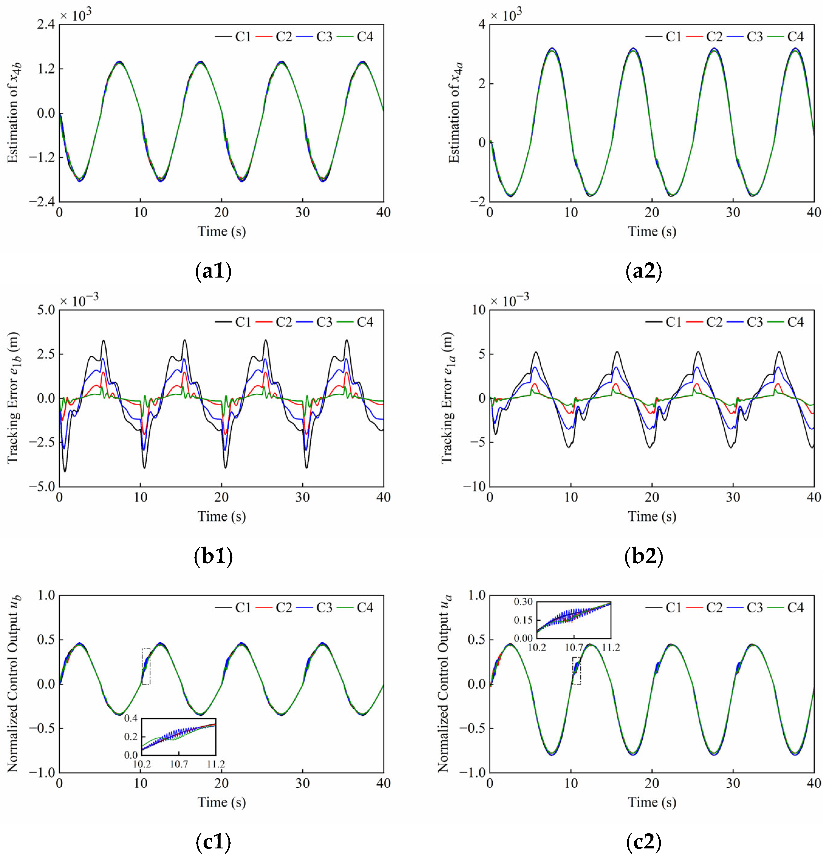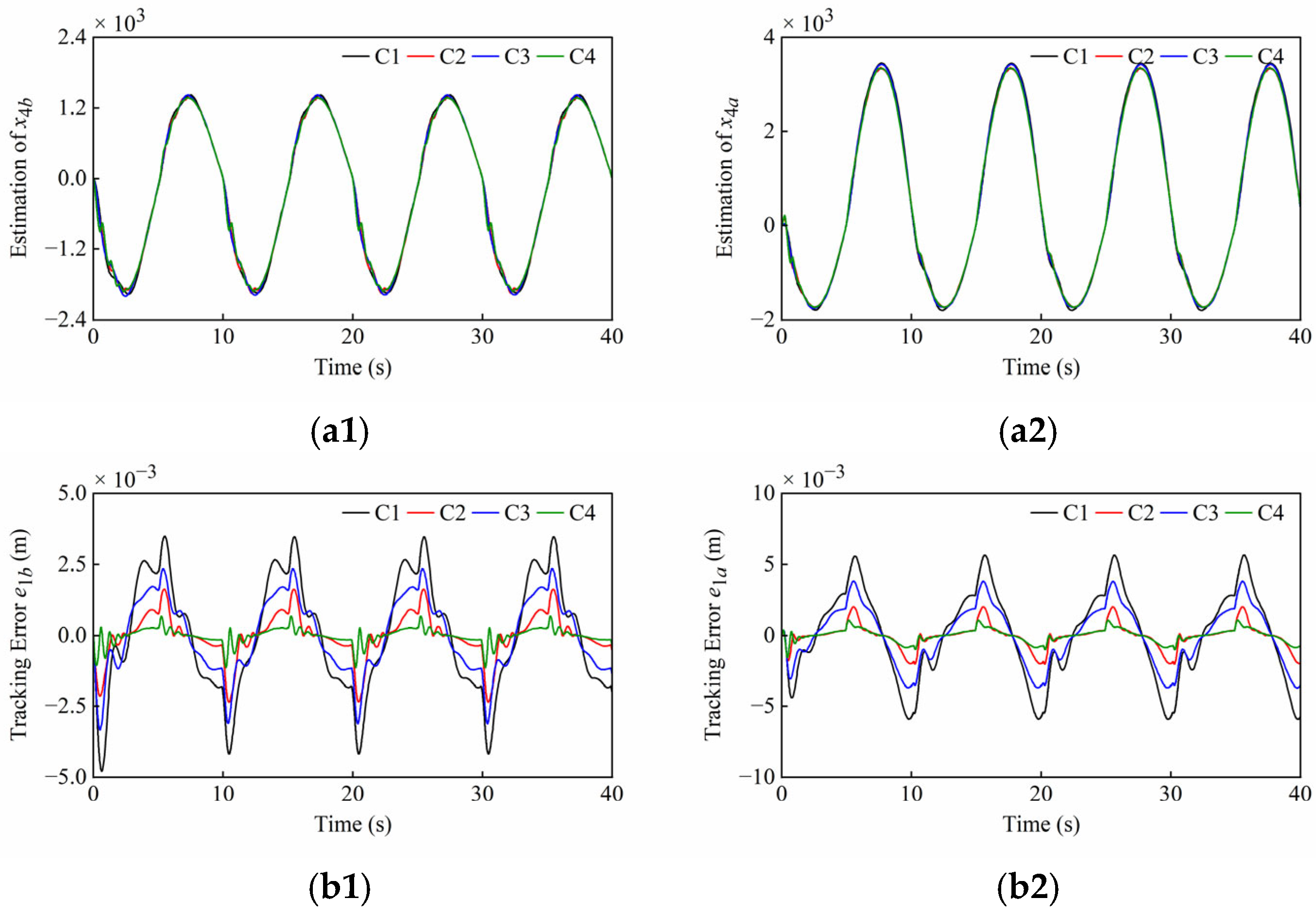 It is worth pointing out that the parameters bn, T, K, kg and ε can be easily set. At the same time, a σ closer to 0, a larger observer bandwidth ω0 and larger gains βi (i = 1, 2, 3) can achieve the faster response and the higher accuracy, but unreasonable values will cause the system to over-respond and amplify high-frequency noise. Therefore, in practical applications, the parameters tuning of both the observer and controller are subject to factors such as measurement noise, the specified sampling rate, and system dynamics. A trade-off between different parameters must be made to achieve optimal control performance.