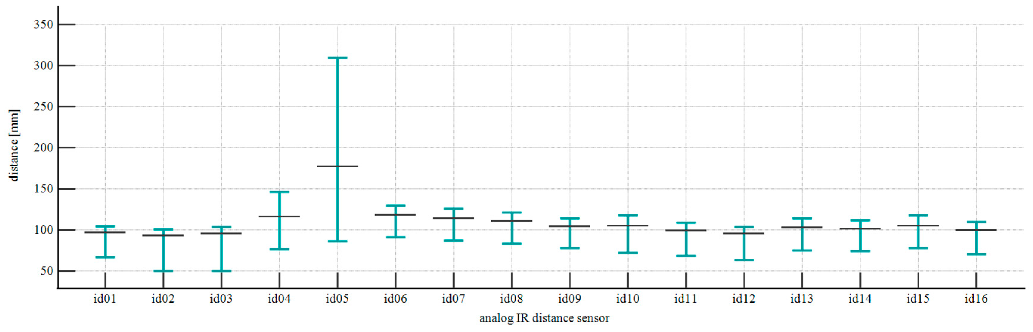 To implement a non-contact measurement system, we designed and printed a 16-part circular frame in PLA with a diameter of 775 mm and an elliptical cross-section measuring 88 mm and 38 mm along the major and minor axes, respectively. The 16 parts were hollowed with a wall thickness of 4 mm. Each part was provided with an embedded analog output-type IR sensor for distance measuring, model Sharp GP2Y0A21YK0F (Sharp Corporation, Osaka, Japan), whose measuring range varied from 100 to 800 mm. This sensor operates within a voltage range of 4.5–5.5 V, uses a 3-pin JST PH connector, and features an update period of 38.3 ± 9.6 ms. We connected the sensors to Seeed Studio XIAO ESP32C3 IIoT (Seeed Studio, Shenzhen, China) development boards and powered the modules using a 20-port USB hub, which was wired via USB-A to USB-C cables.