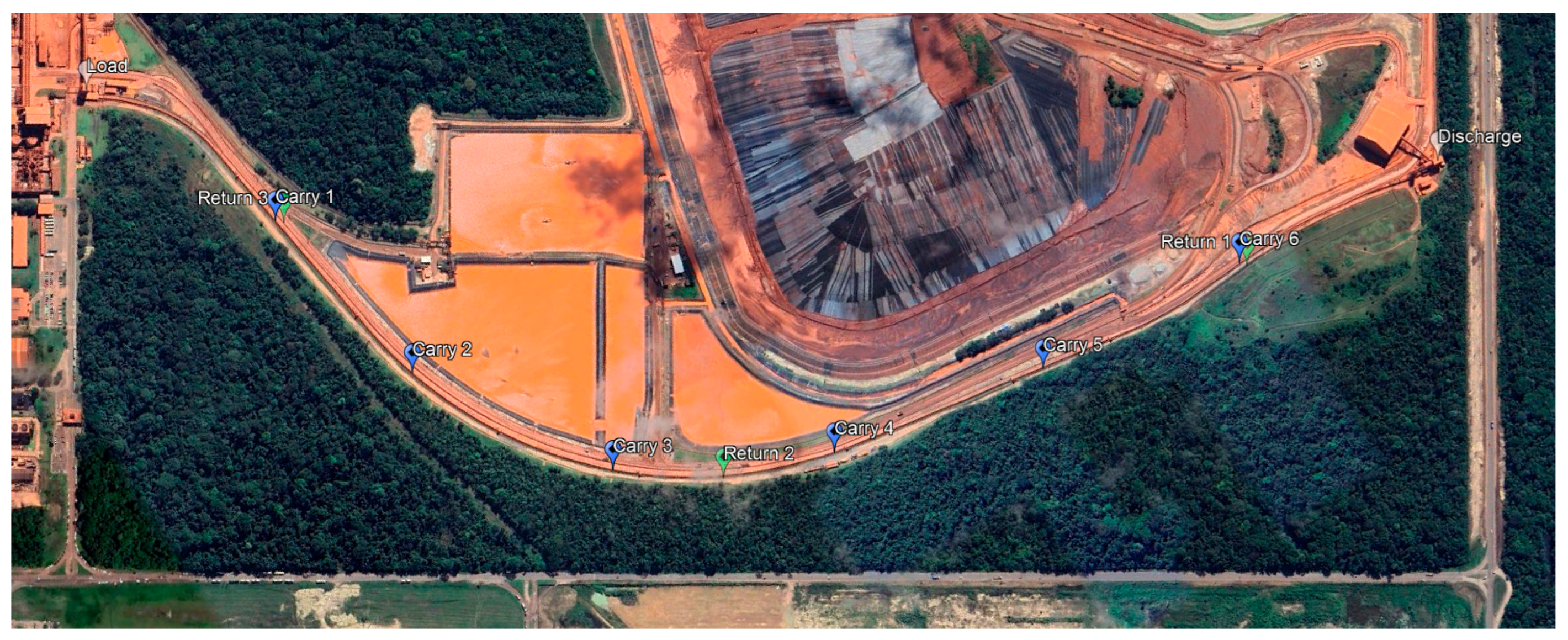 Finally, we considered the typical operational characteristics of pipe conveyors’ routing, which are often long or topographically complex. This demands frequent inspections along the route, with belt positioning recorded at critical points, mainly in curved flights. This knowledge management approach enables operational and maintenance teams to identify trends and anticipate undesirable scenarios. However, this is often based on unstructured decision-making due to a lack of labeled failure data. In this sense, we advocated adopting a unitary protection distance to estimate the number of devices required to mitigate the need for frequent human inspection satisfactorily. For this reason, we proposed multiple sampling along the route as the sixth technological principle for belt rotation monitoring in pipe conveyor applications, outlined in the following digitization framework: