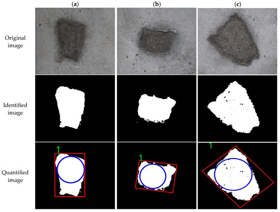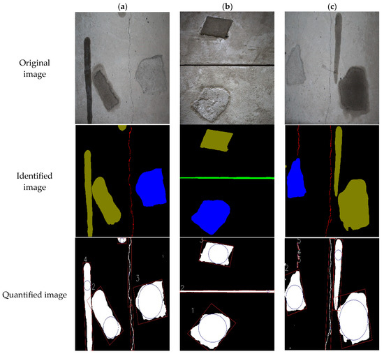 Quantitative identification test of spalling information. (a) Image a; (b) Image b; (c) Image c.