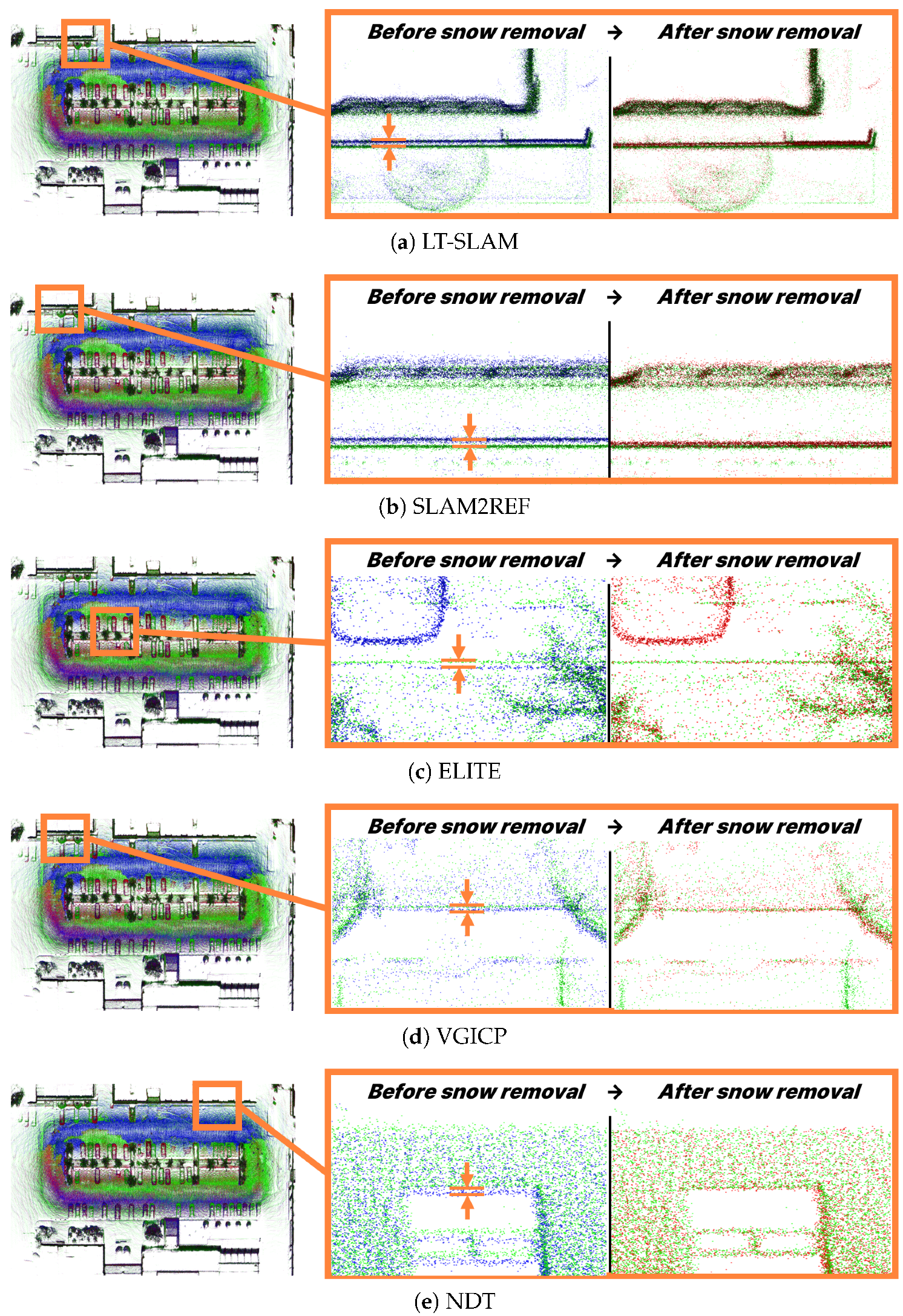 - We reduce registration errors between maps by utilizing snow-removed data, thereby maintaining accuracy in the map updating process.