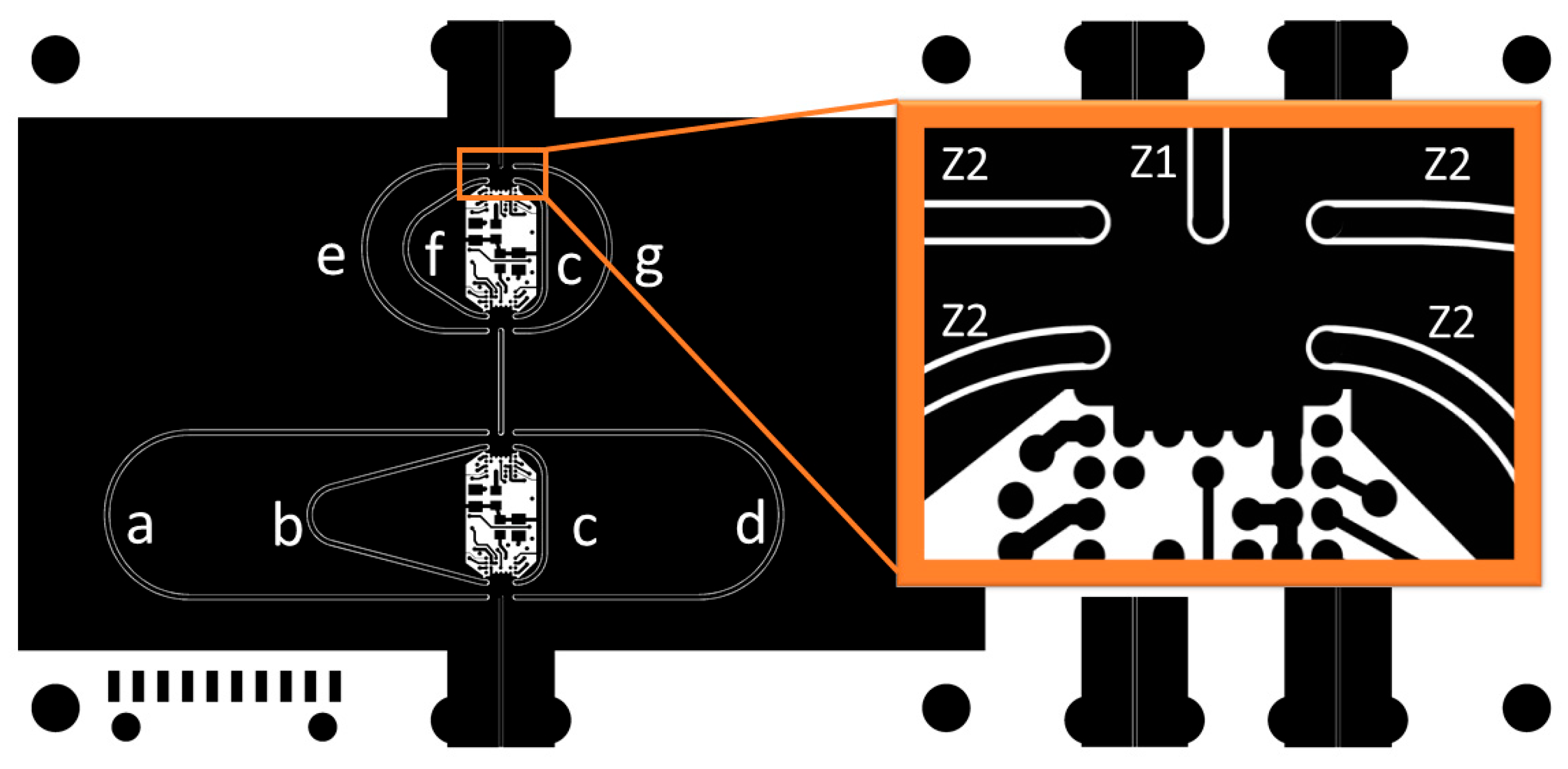 All coplanar waveguide (CPW) structures are sensitive to asymmetries and discontinuities, which can excite odd modes of propagation, leading to impedance imbalance and group delay distortion. Two accepted methods for suppressing parasitic modes are the use of air bridges or vias to a lower ground plane. This design employs vias for simplicity and compatibility with standard PCB processes.