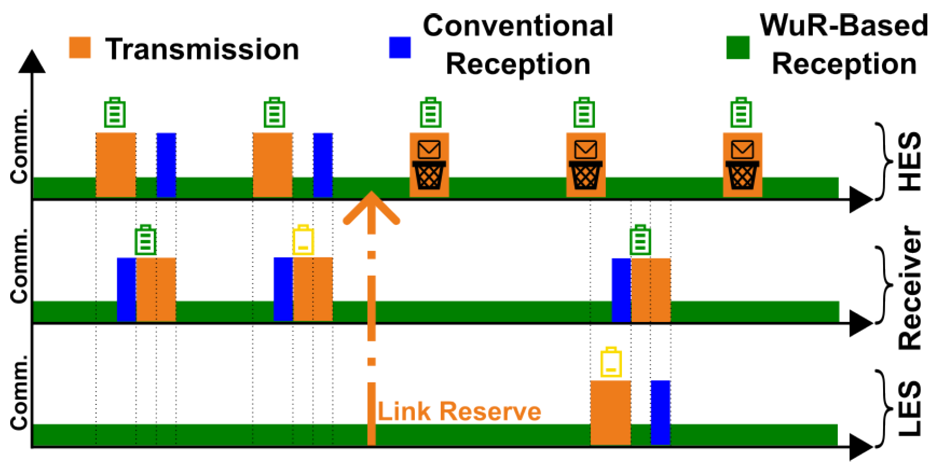 - We propose BEWARE-MAC (BattEryless WAke-up Receiver-Enabled MAC), a Wake-up receiver-based MAC protocol. BEWARE-MAC is specifically designed to utilize the addressing capabilities of WuRs to improve communication performance among energy-harvesting, batteryless devices. This protocol has mechanisms to increase the probability of successful one-to-one data transmissions among nodes that may or may not have the same available energy at their disposal while increasing fairness in both cases. Furthermore, it supports the communication of devices in various network topologies, such as star-topology and multi-hop networks. BEWARE-MAC can also transmit multicast and broadcast messages from one device to the rest of the network’s active nodes.