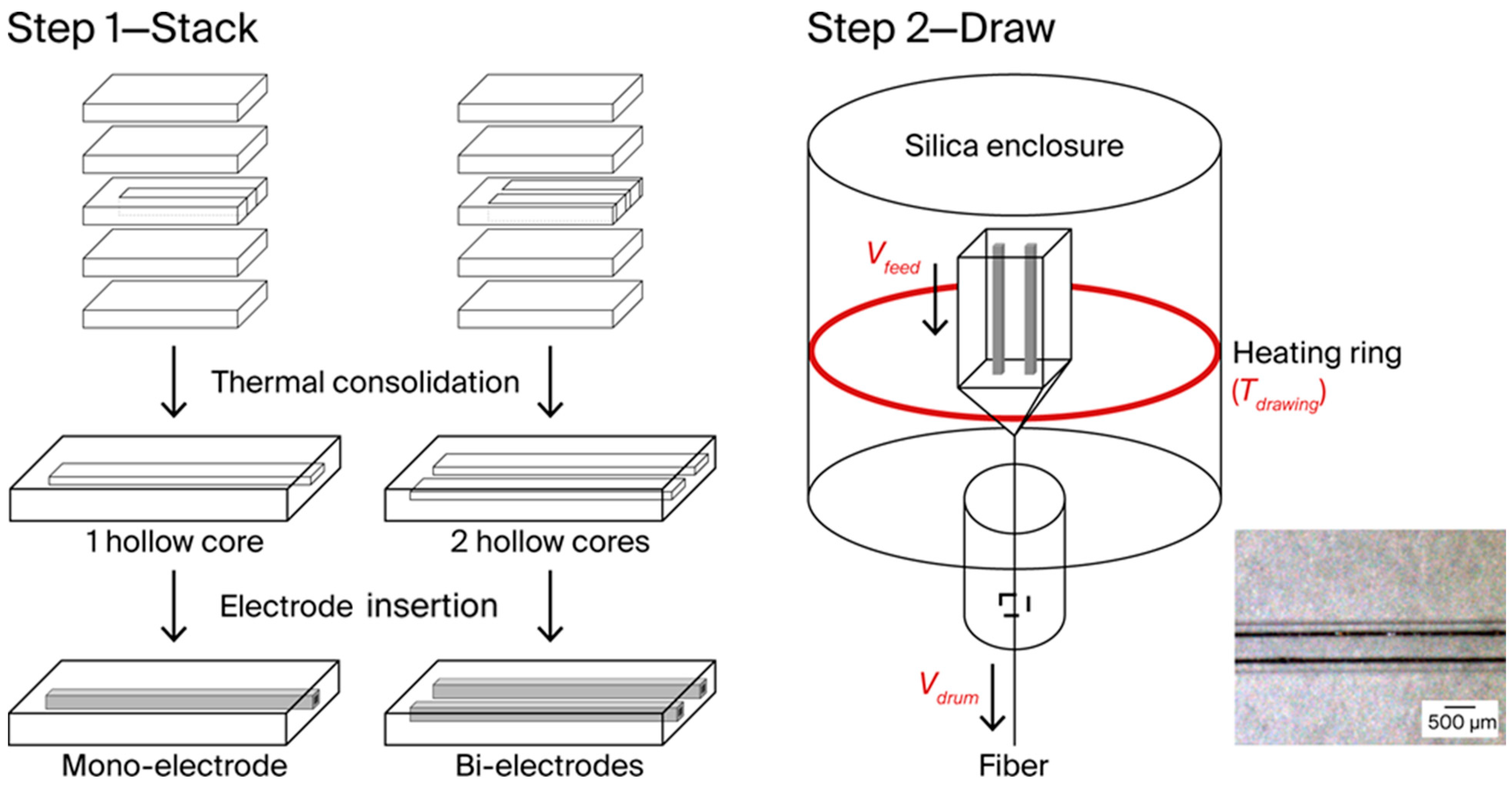 - Dai, Y.; Du, M.; Huang, L.; Zheng, J.; Wei, L.; Qiu, J.; Ren, C.; Zhou, S. Multimaterial Glass Fiber Probe for Deep Neural Stimulation and Detection. Adv. Opt. Mater. 2023, 11, 2202184. [Google Scholar] [CrossRef]