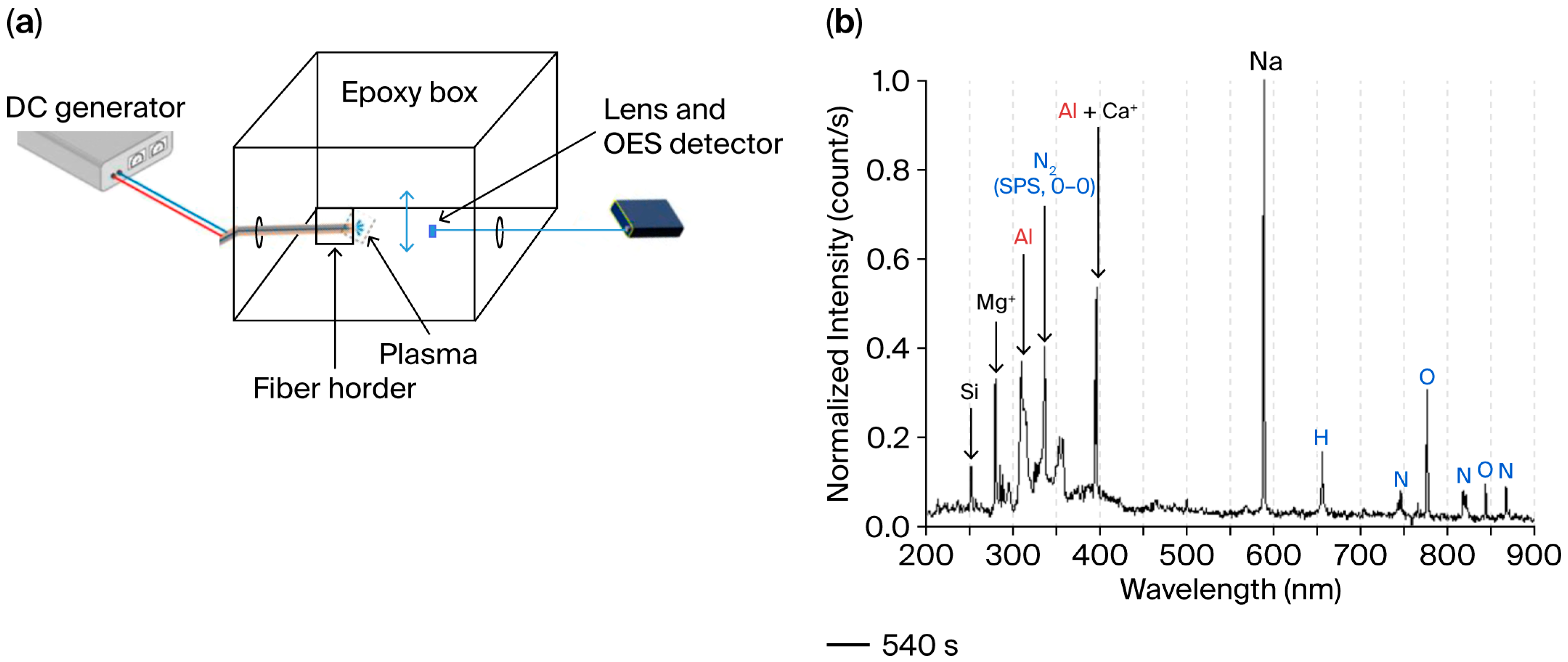 - The inter-electrode spacing value is critical for inducing the formation of a non-bridging layer of oxides between the electrodes during plasma generation. The in situ formation of an oxide layer on the tip of each electrode drastically increases the duration of the plasma emission without the need for additional post-functionalization of the electrode surface.