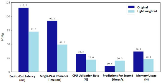 Five key metrics (Table 2) were selected to evaluate the lightweight model’s performance on a real edge-computing device.