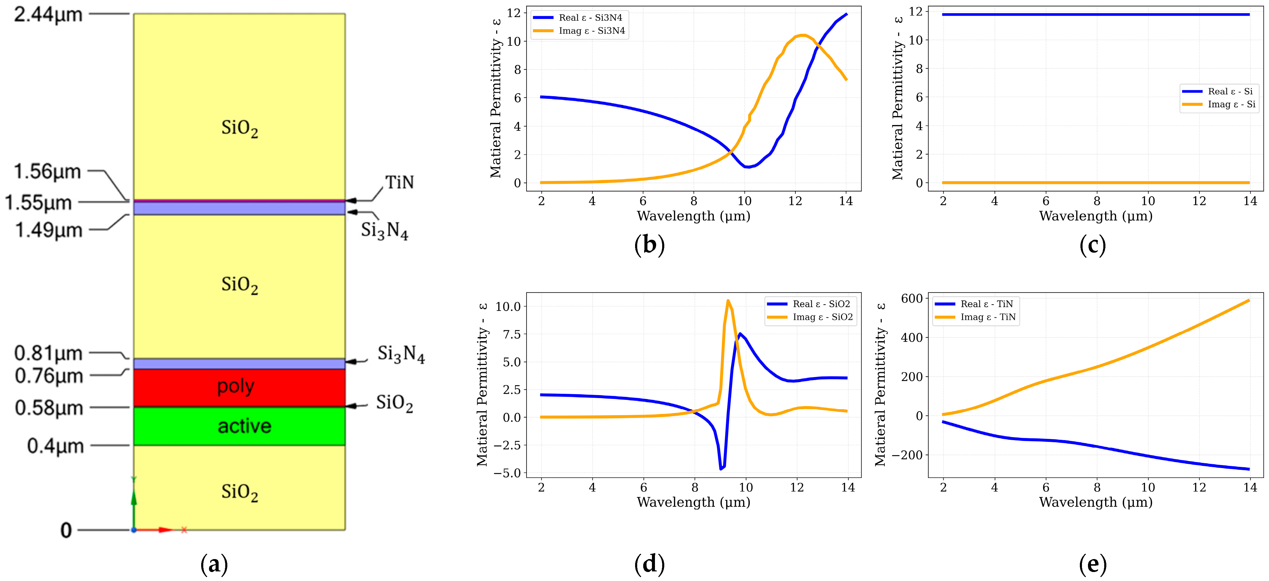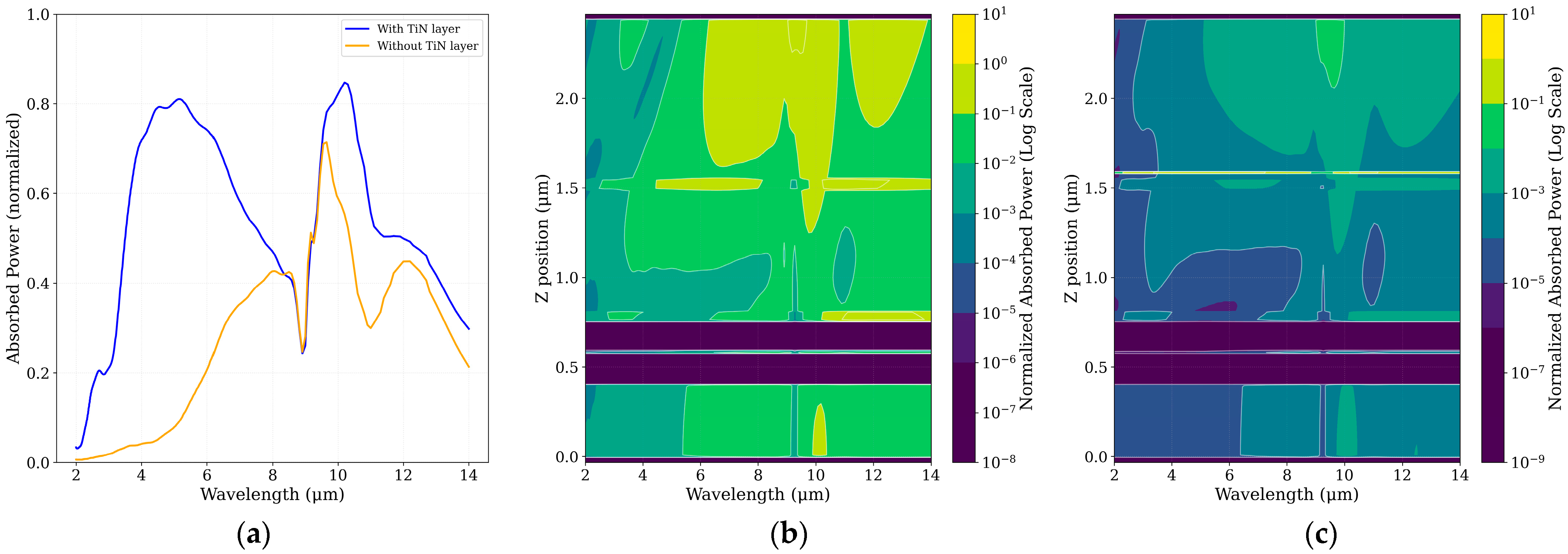 3.3.1. CMOS Layers Absorption and TiN-Embedded Layer
