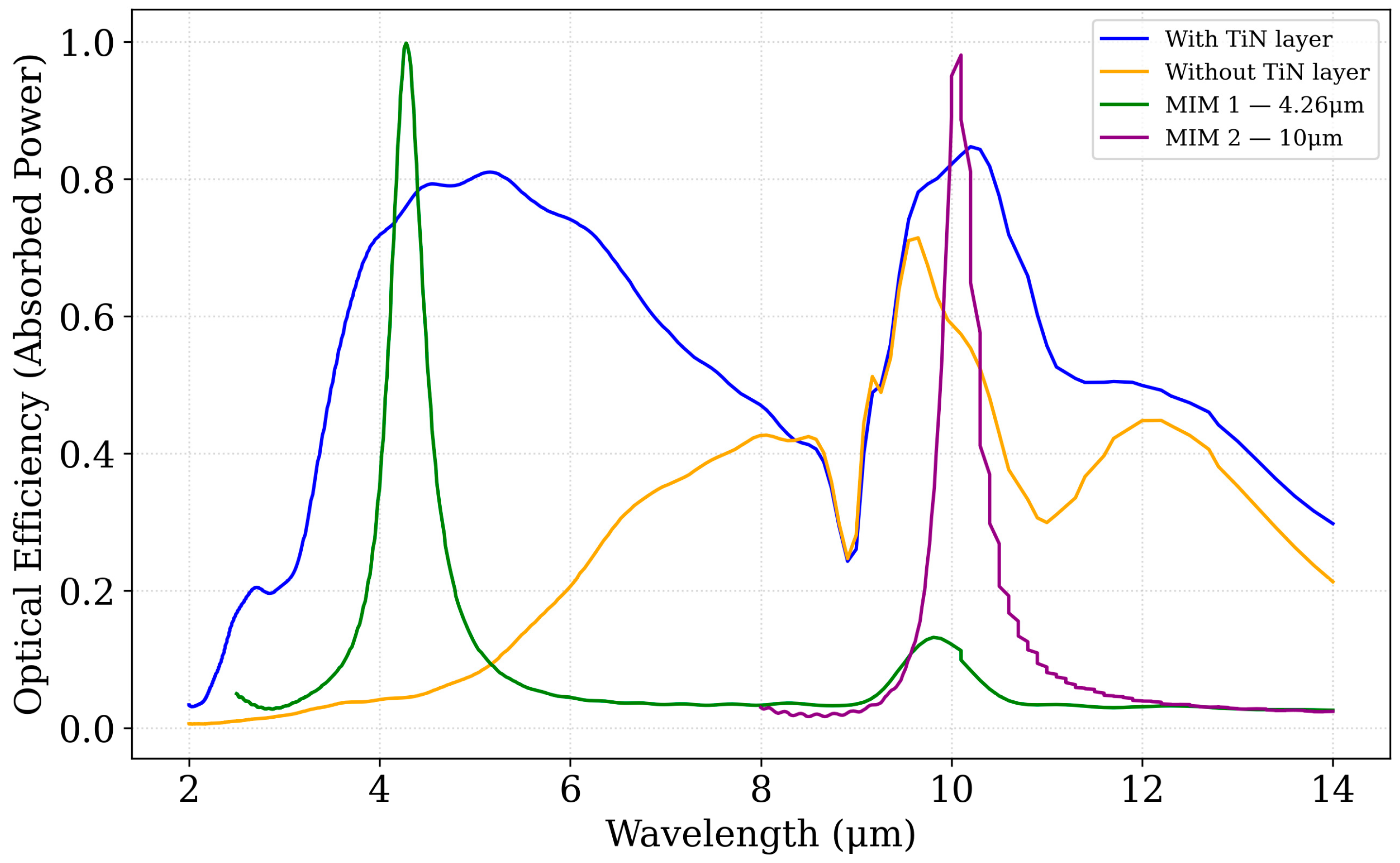 - Configuration 1: Optimized for peak absorption at 4.26 µm, targeting the CO2 absorption band for non-dispersive infrared (NDIR) gas sensing.