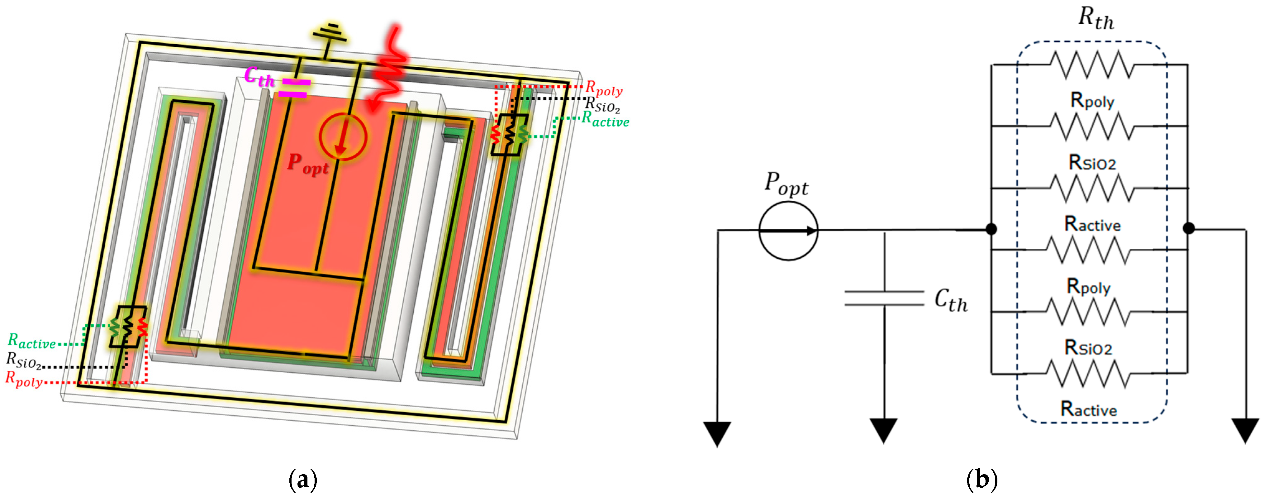 - Roy, A.; Ta, B.Q.; Azadmehr, M.; Aasmundtveit, K.E. Post-CMOS Processing Challenges and Design Developments of CMOS-MEMS Microheaters for Local CNT Synthesis. Microsyst. Nanoeng. 2023, 9, 136. [Google Scholar] [CrossRef]