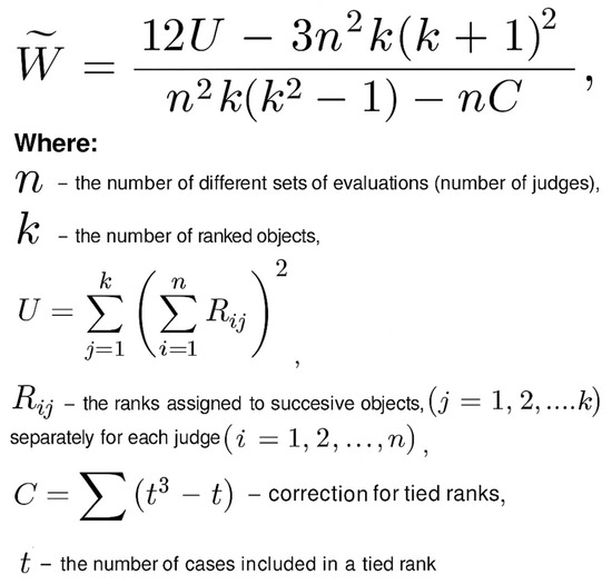 - Teles, J. Concordance Coefficients to Measure the Agreement among Several Sets of Ranks. J. Appl. Stat. 2012, 39, 1749–1764. [Google Scholar] [CrossRef]