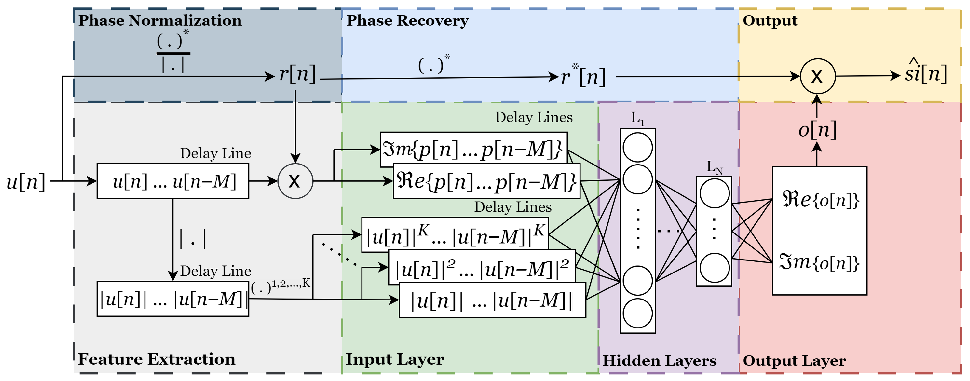 15], a feed-forward neural network (FFNN) was employed to reconstruct SI signals in the digital domain, achieving superior cancellation performance compared to traditional polynomial models while maintaining lower computational complexity. More recent studies have investigated deep neural network architectures such as convolutional neural networks (CNNs) and gated recurrent units (GRUs), which enable effective modeling of both nonlinear and memory effects of the SI channel [