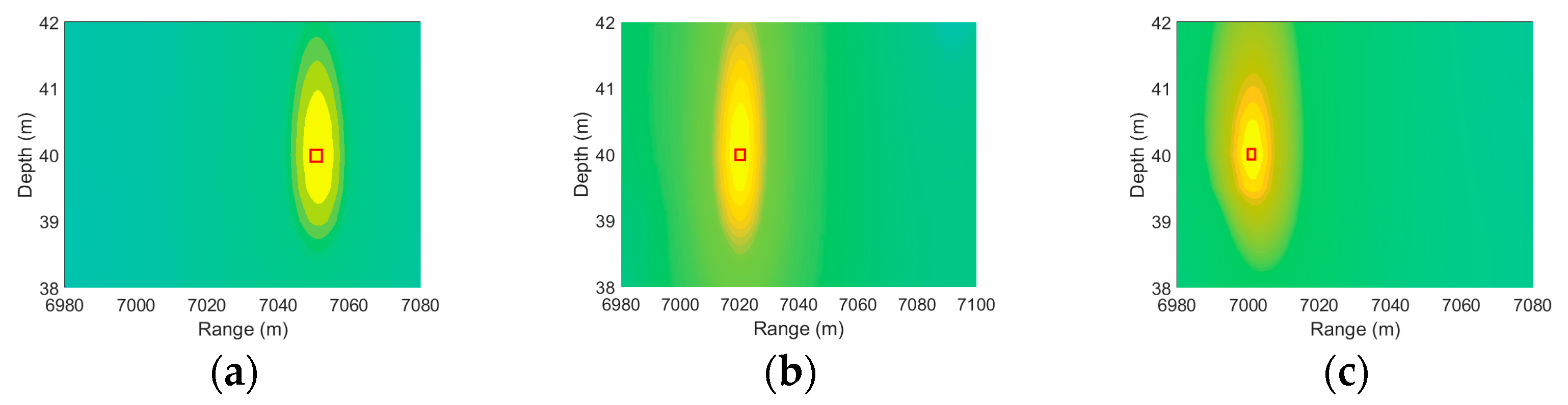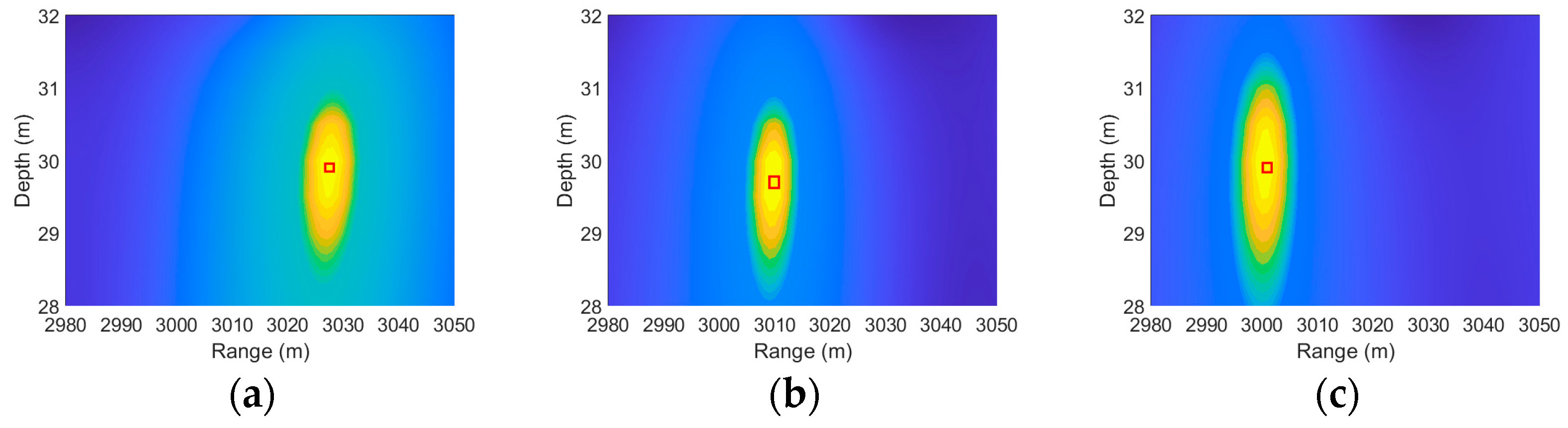 - Yang, T.C. A Method of Range and Depth Estimation by Modal Decomposition. J. Acoust. Soc. Am. 1987, 82, 1736–1745. [Google Scholar] [CrossRef]