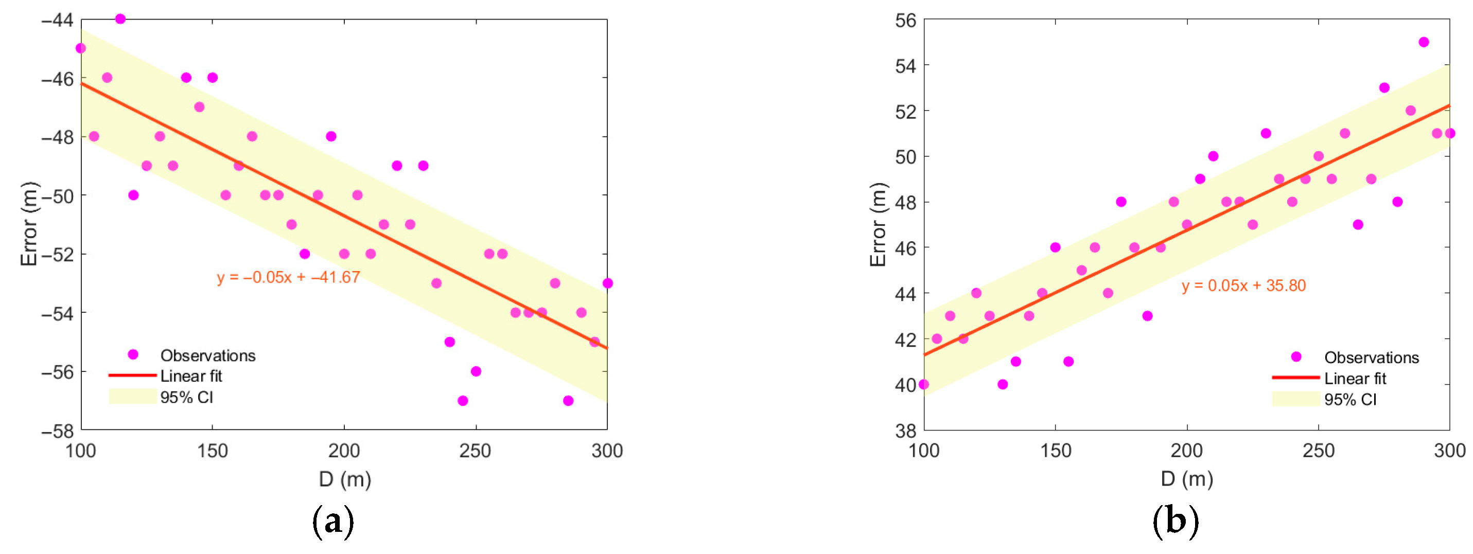 3.3. Distance Estimation Error Under the Perturbation of the Gaussian Eddy Model