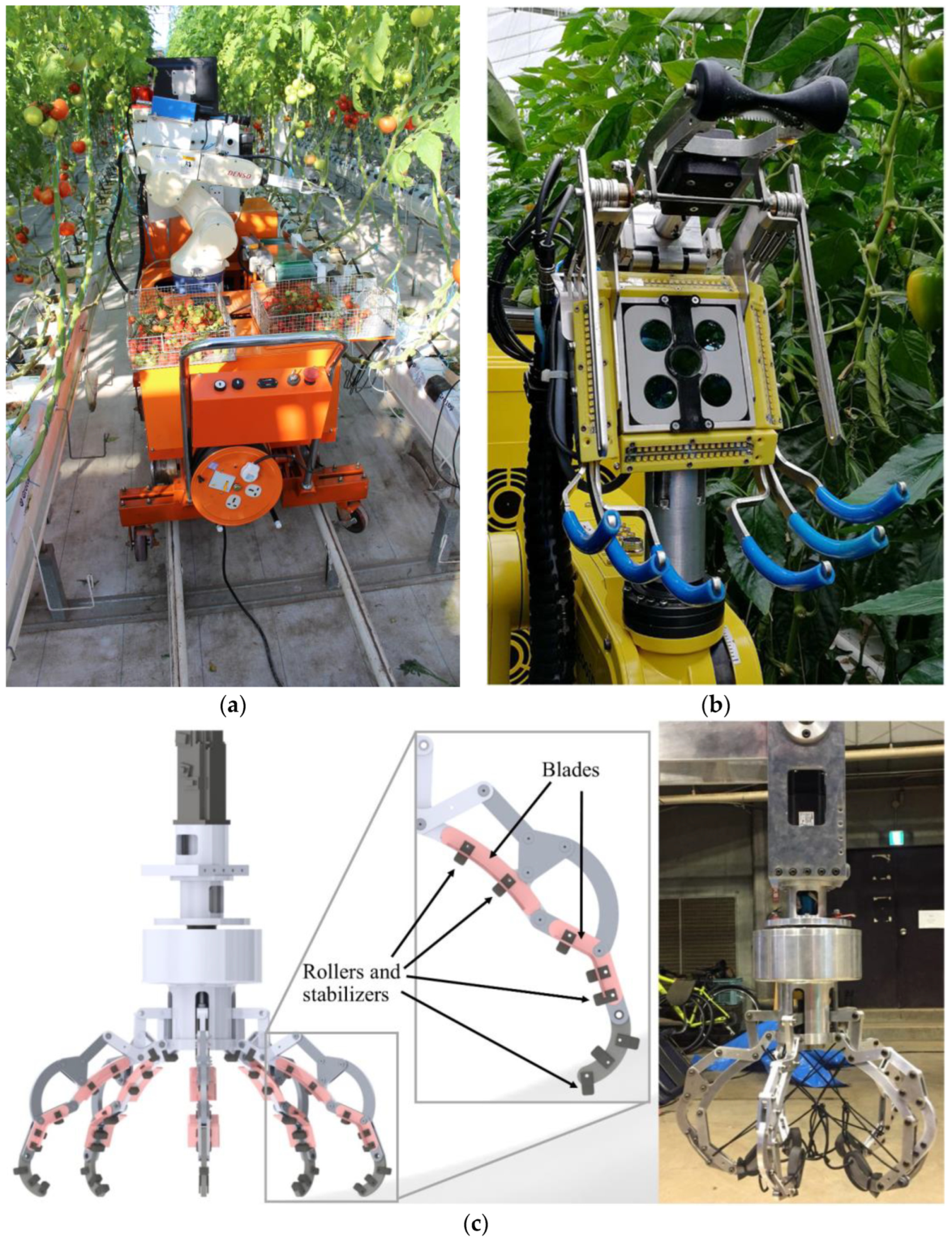 In addition, other crops have been targeted by robotic harvesting systems, each utilizing specialized end effectors and cutting mechanisms. When it comes to asparagus, a robotic arm uses two fingers and a slicing blade uses a cylindrical cam mechanism that makes it easy to perform fast arm movements. A tilt adjustment function makes the arm able to tilt up to 15 degrees, allowing it to be adaptable for use in agricultural fields [
